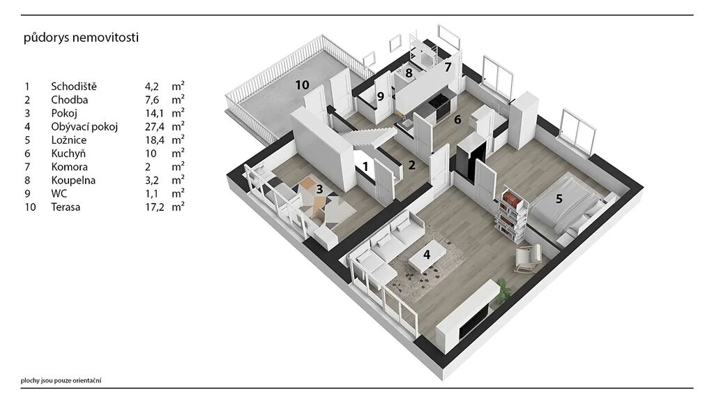 2. NP: bytová jednotka, 88 m2 + 17,2 m2 terasa