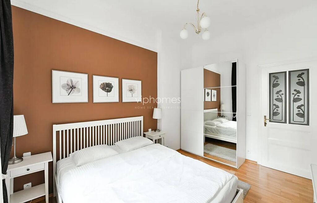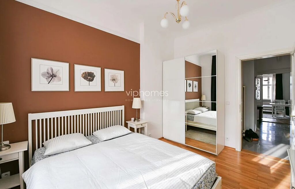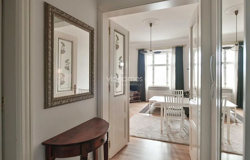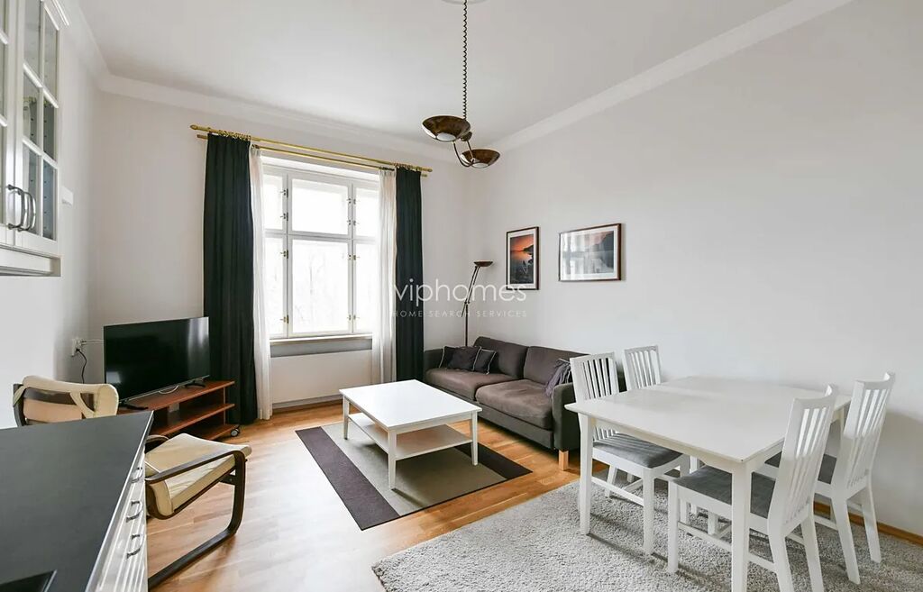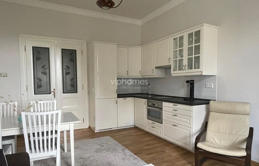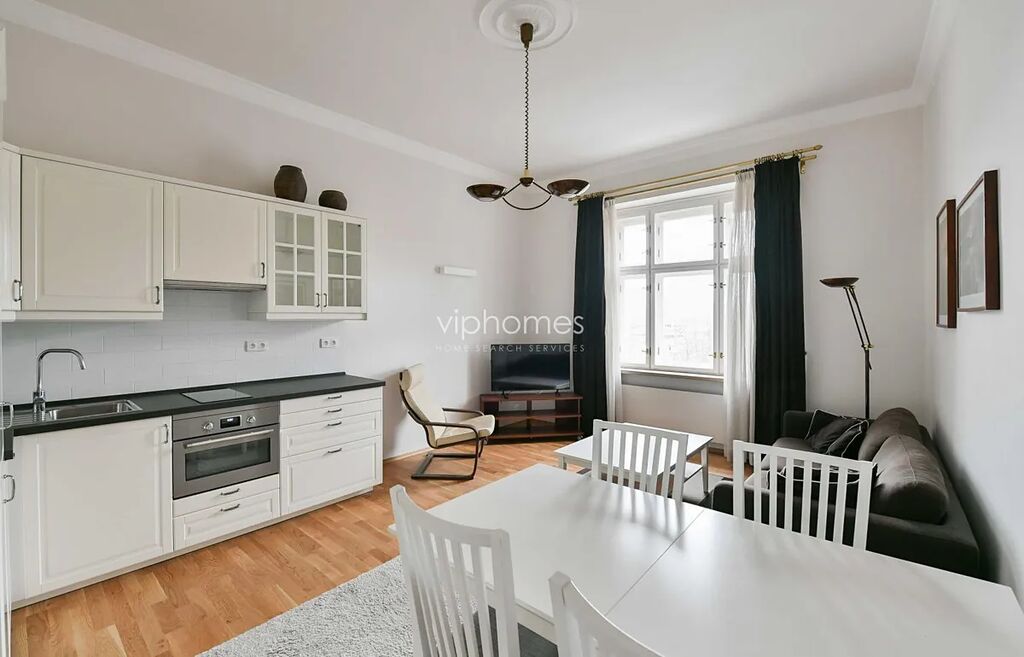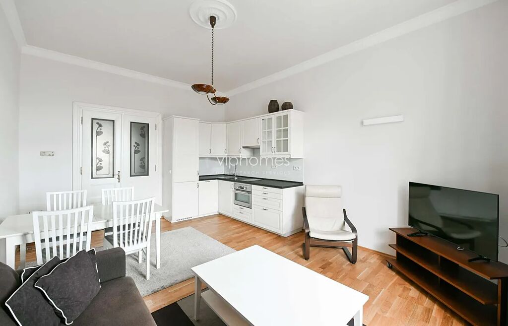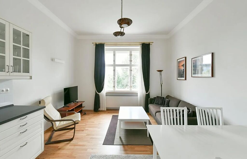 Kompletně zařízený komfortní byt 2kk ve 3. patře (4.NP) plně rekonstruované secesní budovy s okouzlujícím výhledem na panorama Pražského hradu. Příjemné bydlení v pěší dostupnosti od Vltavského nábřeží s kulturními památkami jako Žofín, Národní divadlo a Tančící dům v docházkové vzdálenosti. Dvě minuty chůze k nejbližšímu metru na Karlově náměstí, četné tramvajové spojení do všech částí Prahy.