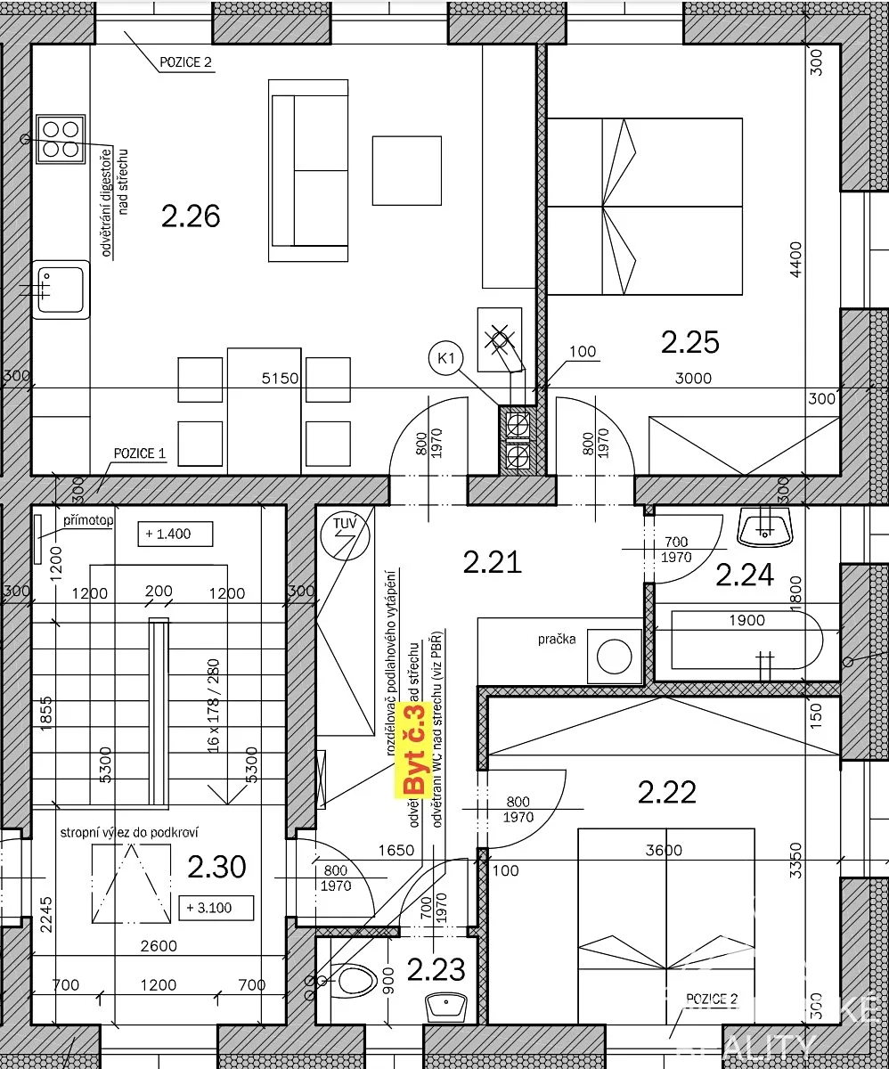 Zálohy na energie a služby: 6 150 Kč / měsíc (elektřina, vodné a stočné, teplo, internet s TV, úklid a údržba společných prostor)