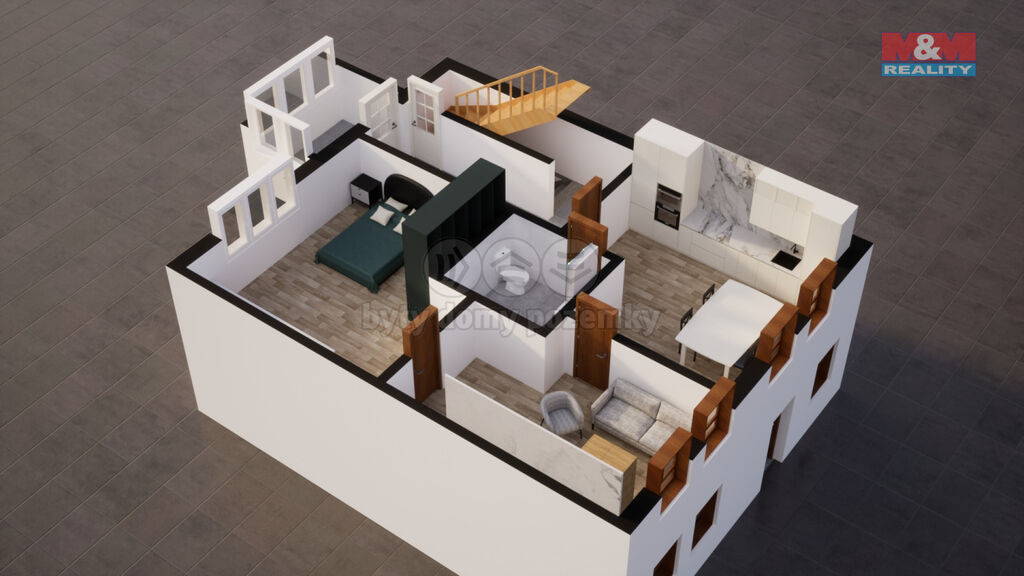 Součástí nabídky je i útulná zahrádka za domem s kůlnou na nářadí. Nechybí ani prostorný sklep s dostatkem úložného prostoru.