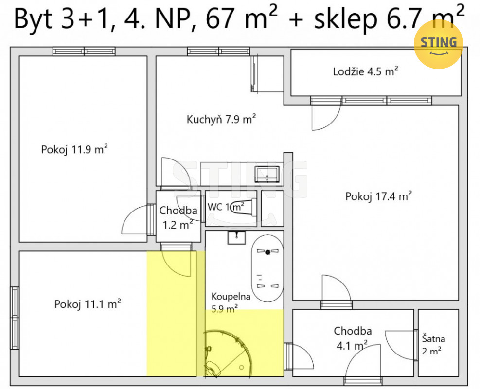 Dispozice 3+1, podlahová plocha 69 m², užitná plocha 65 m²