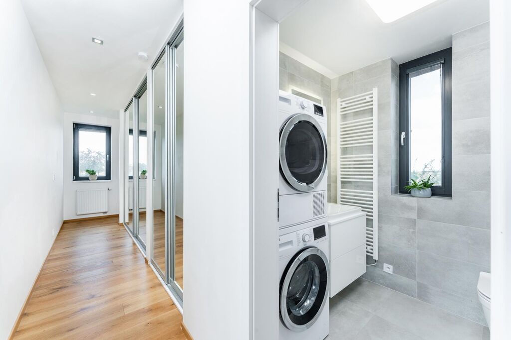 . Dům je dvoupodlažní, zděný, plně zařízený. Dům je vytápěn kondenzačním plynovým kotlem Baxi s integrovaným zásobníkem vody, podlahy jsou třívrstvé dřevěné Ecowood, okna dřevěná s trojskly a vnitřními žaluziemi, v horním patře na oknech venkovní rolety. Dům je vybaven nábytkem v obývacím pokoji sedací souprava Natuzzi, kuchyňský kout s kuchyňskou linkou včetně vestavných spotřebičů, jídelní stůl s židlemi, prostorné vestavné skříně v hale i v patře. V dětském pokoji a chodbě ve 2NP instalována klimatizace Bosch. Dům obklopuje udržovaná zahrada 629m2, vhodná k odpočinku či grilování s přáteli. K příjemnému venkovnímu posezení vybízí terasa vybavená venkovním nábytkem, krytá hliníkovou pergolou SUNTECH 8x4m odolná větru i dešti se zatahovací střechou a boční stínící technikou zipscreen, díky které si užijete léto naplno. Pro sport i relax slouží bazén 6x3 m se slanou vodou, který je vyhříván téměř po celý rok invertorovým čerpadlem Rapid Inverter ric20 8,5Kw s chlazením. Soukromí domu i zahrady zajištuje udržovaný, vzrostlý živý plot.