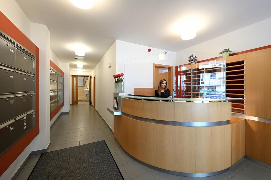 Jižní orientace prostorného a velmi tichého bytu v klidném domě s recepcí 24/7. Ve všech oknech vnější elektrické rolety. Dřevěné podlahy. Zcela nové spotřebiče: pračka, sušička, lednice s mrazákem. Tři minuty pěšky na metro. V okolí krásné parky.