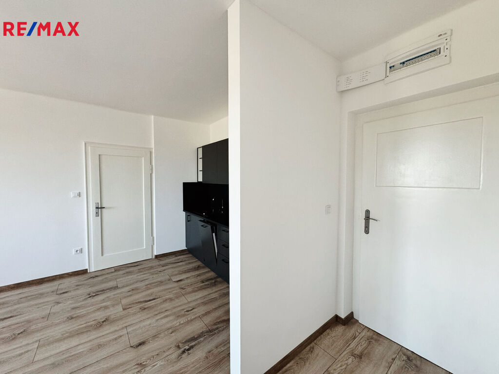 Byt je dispozičně rozdělen na ložnici, prostornou místnost s kuchyňskou linkou, koupelnu se sprchovým koutem a toaletou a chodbu. Byt nabízí dostatek prostoru pro obývací/jídelní prostor a působí velmi vzdušným oknem. Nová kuchyňská linka je vybavena myčkou nádobí, elektrickou troubou, indukční deskou a digestoří. Výhodou pronájmu je pohodlné parkování přímo před domem.