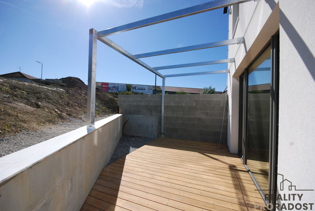 Byt Vás okouzlí krásnou krytou terasou a francouzským oknem, které spojuje obývací prostor s venkovním posezením. V ložnicích jsou předokenní žaluzie pro zachování soukromí, ve všech pokojích kvalitní vinylová podlaha – příjemná na dotek a snadno udržovatelná. Všechny interiérové dveře jsou z tvrzeného mléčného skla, které dodává bytu lehkost, vzdušnost a moderní design.