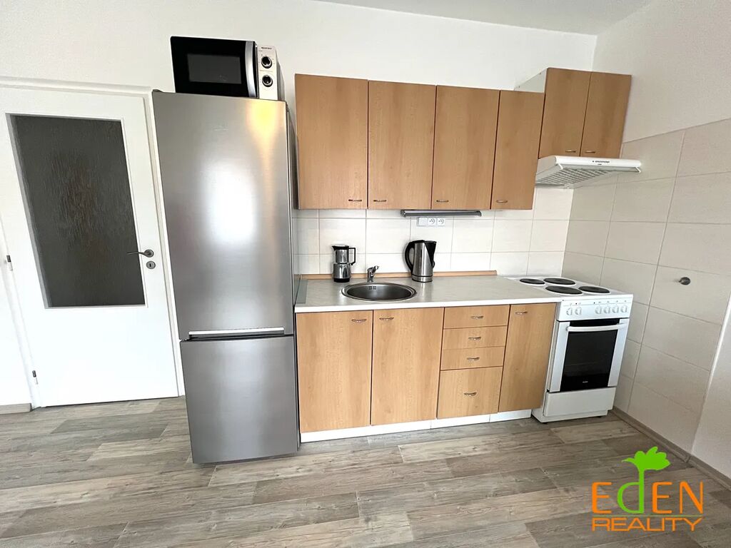 Nabízíme k pronájmu zrekonstruovaný, kompletně zařízený byt 1 +kk s výměrou 30 m2 v 5 poschodí 7.patrového domu. Byt je vybaven kuchyňskou linkou (lednička, mikrovlná trouba, el. sporák). V kuchyňském koutu se nachází jidelní stůl, 2 židle i pracovní kout s psacím stolem. V obývací části je rozkládací sedací souprava s úložným prostorem a konferenční stolek. V předsíni je vestavěná skříň.V koupelně je pračka. K bytu náleží sklep o velikosti 2 m2. Vratná kauce 13.000,-Kč, odměna RK 13.000,-Kč. Zálohy na služby, vodu, teplo činí 2000,-Kč, el. energie bude převedena na nájemce.