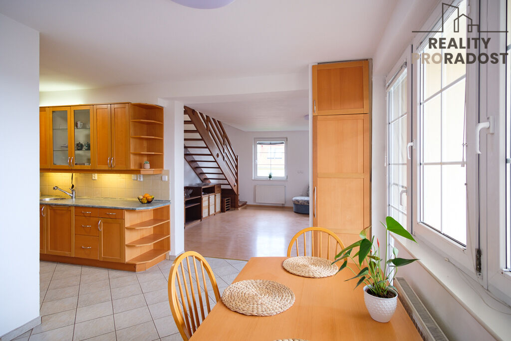 Nabízíme k prodeji slunný mezonetový byt 6+kk o celkové podlahové ploše 156,1 m2 (včetně sklepa - 2,7 m2) s lodžíí (7m2). Byt je situován ve 3. patře (4. NP) a podkroví cihlového bytového domu z roku 2000, bez výtahu - na ulici Politických vězňů v Olomouci. K bytu je možné pořídit i dvojgaráž, nacházející se v oploceném areálu poblíž bytového domu.