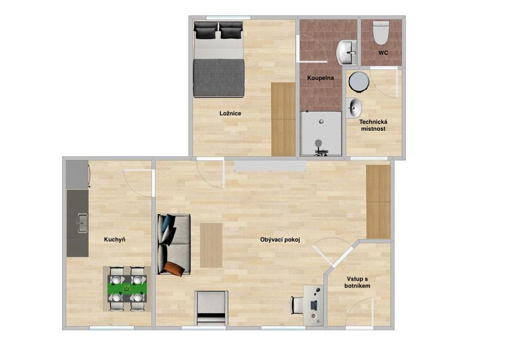 Pečlivě udržovaný, čerstvě vymalovaný, částečně vybavený byt, může být již brzy Vaším domovem. Byt má dispozici 2+1, 64m2 s okny do ulice Hájkova. Byt se nachází v přízemí a má samostatný vstup z ulice. Skládá se z chodby s věšákem a botníky, obývacího pokoje s pracovním koutem, kuchyní, ložnice, koupelny se sprchovým koutem, technickou místností a samostatným WC. Parkování je možné před domem. V okolí je veškerá občanská vybavenost.