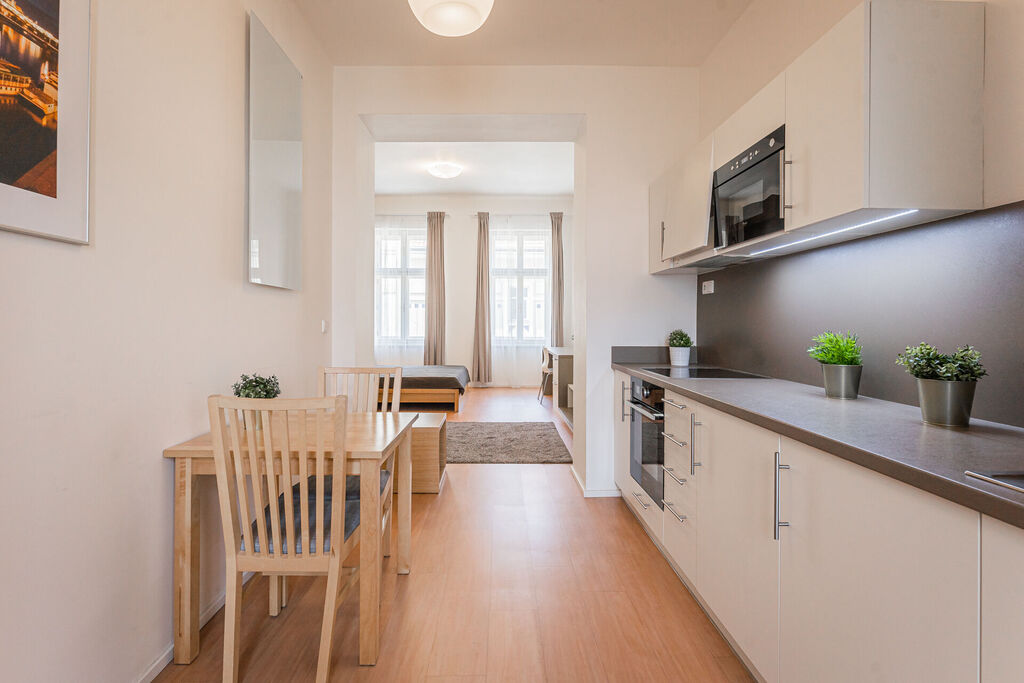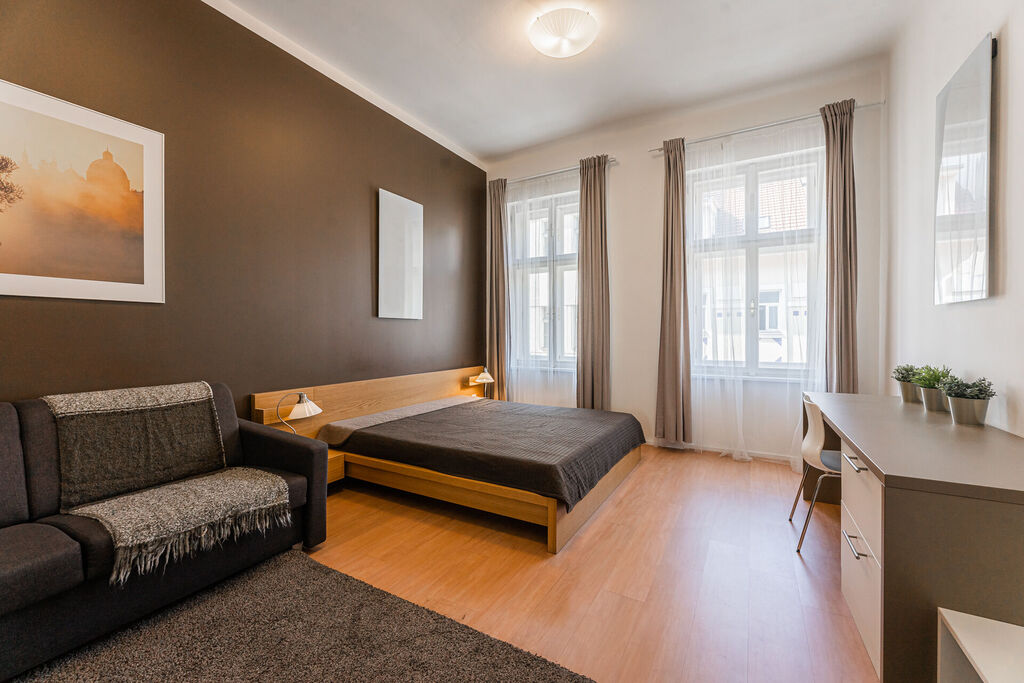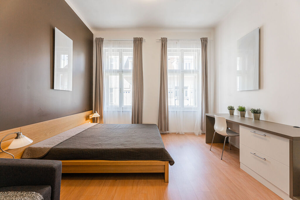 Jedná se o bytový dům se dvěma nebytovými prostory v přízemí domu s přímým vstupem na ulici, šesti byty s dispozicemi 1kk a prostorným bytem 3kk ve čtvrtém patře s klimatizací a dvěma koupelnami. Součástí je společný dvorek, který je pečlivě upravený a může v budoucnu sloužit pro relaxaci nájemců. Dům je podsklepený, nyní nevyužito. Všechny prostory jsou pronajaty za tržní nájemné. Byty jsou plně vybaveny nábytkem a lze zvážit obratem provozování krátkodobých pronájmů, které by velmi jednoduše navýšily výnosnost.