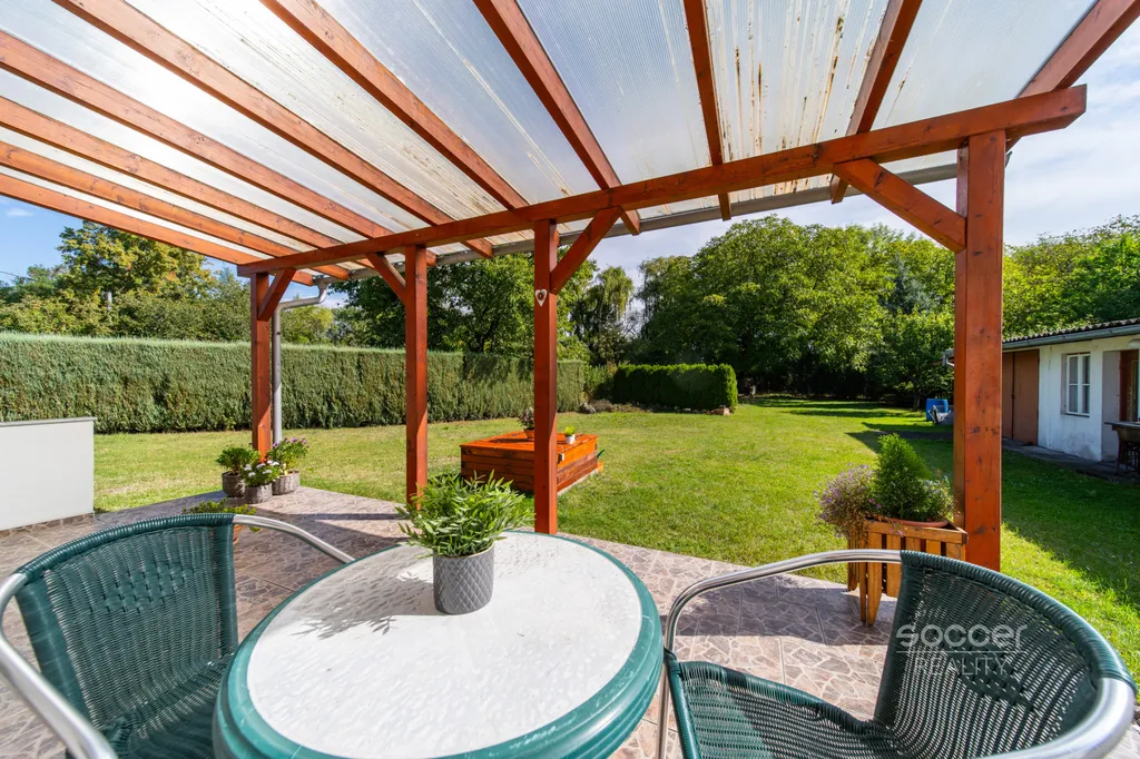 Součástí prodeje je garáž, dílna, dvě kůlny, dřevník a letní kuchyně s komínem. Parkování je zajištěno v garáži, pod krytým stáním i před domem, kde jsou dvě stání ze zámkové dlažby. Zahrada je částečně okrasná a částečně užitková.