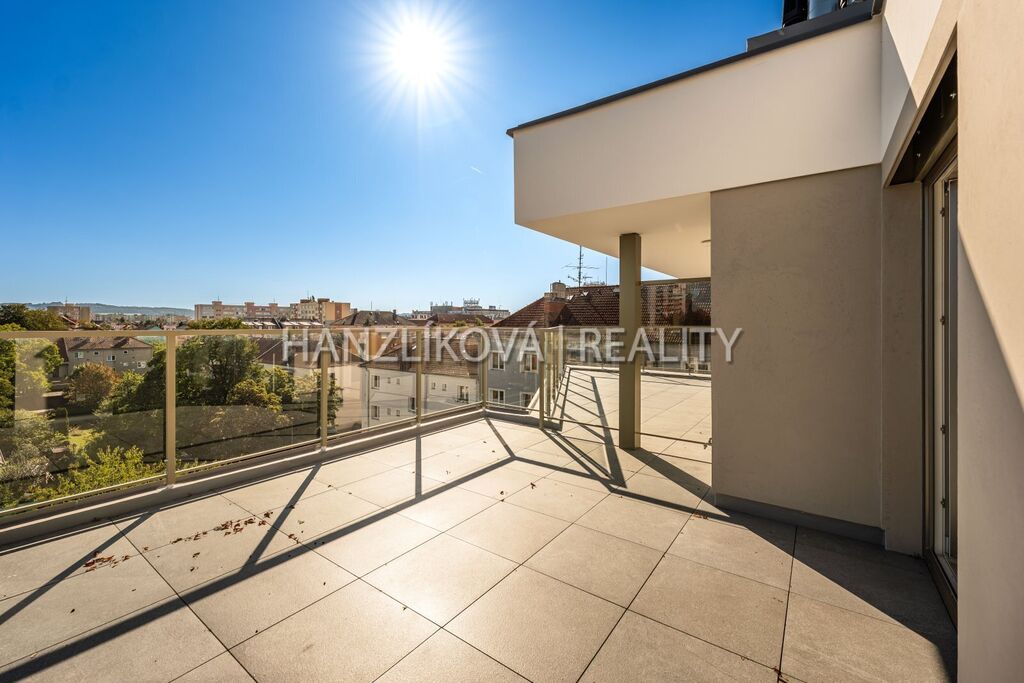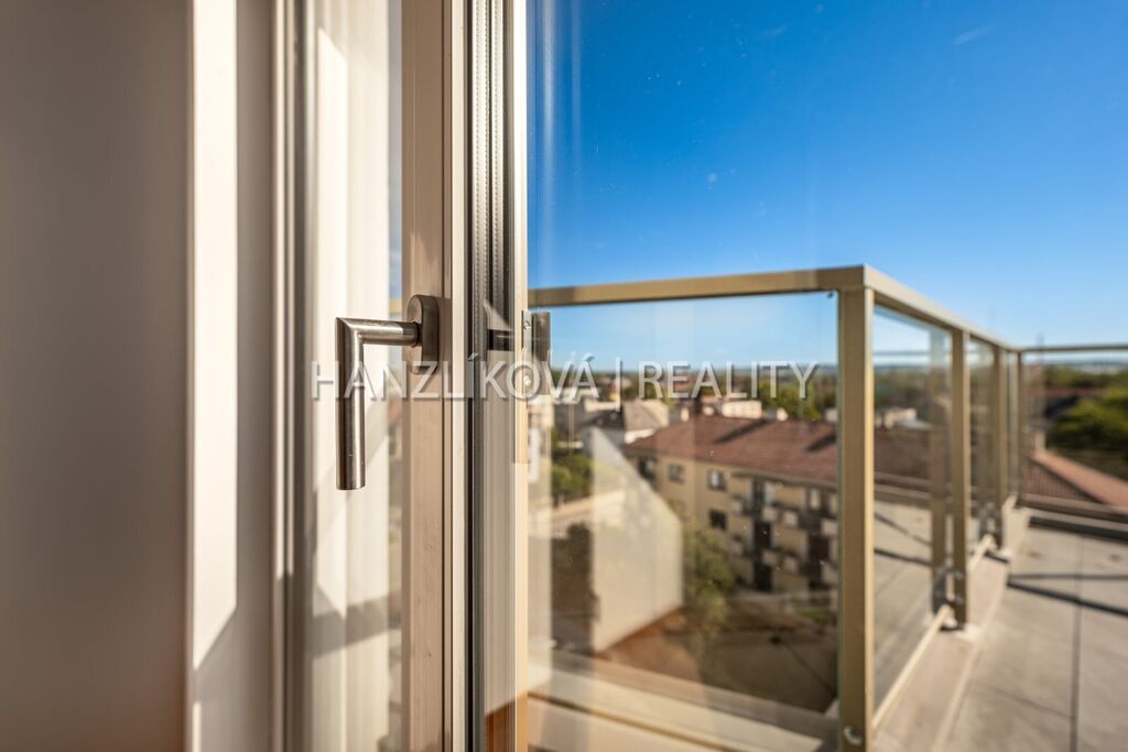 Exkluzivně nabízíme k pronájmu zcela novou bytovou jednotku 3+kk, byt číslo B.31, která se nachází v posledním patře ( 6. NP / 6NP) nově postaveného bytového domu "residence Hálkova". Byt o výměře 65 m2 + terasa 20 m2 je dispozičně řešen jako 3kk, je orientovaný na východ a sever a skládá se z těchto místností : předsíň s vestavnými skříněmi, pokoj, pokoj, koupelna se sprchovým koutem a toaletou, obývací pokoj s kuchyňským koutem a krásná terasa o výměře 20 m2, ze které je výhled téměř na celé město.