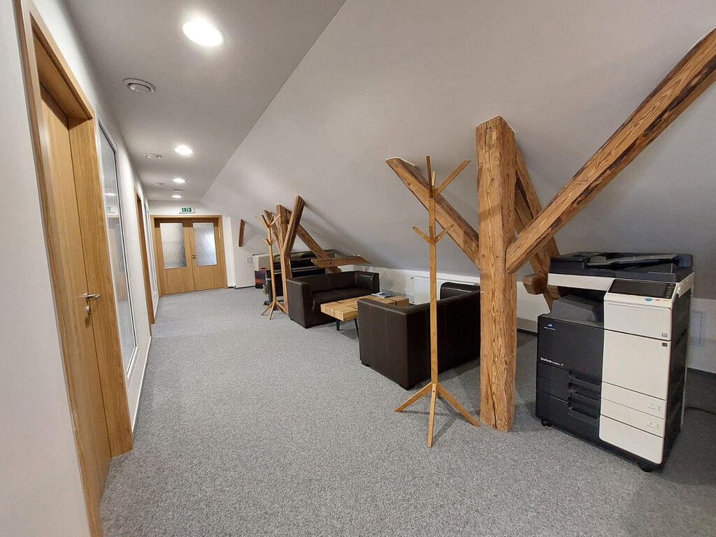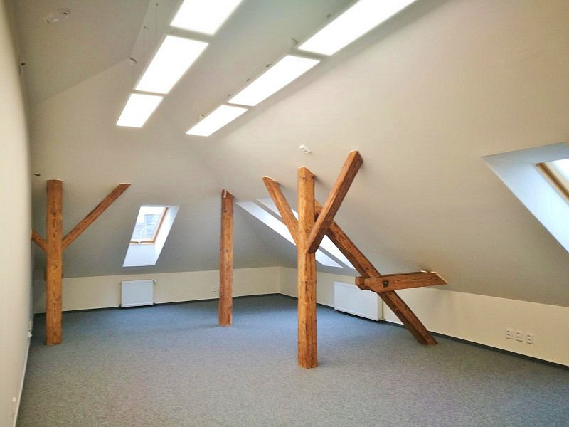 Nabízíme Vám k pronájmu zrekonstruovanné podkrovní kanceláře naproti Ostravar arény. Tyto klimatizované kanceláře se nachází ve 3. NP a jsou dostupné jak po schodišti, tak za pomoci výtahu. Nájemci jsou k dispozici pánské a dámské toalety na patře, vlastní kuchyňka a místnost pro IT technologie/servery. Pro potřeby současného nájemce byly upraveny dispozice kanceláří a v případě zájmu lze obnovit původní rozložení.
