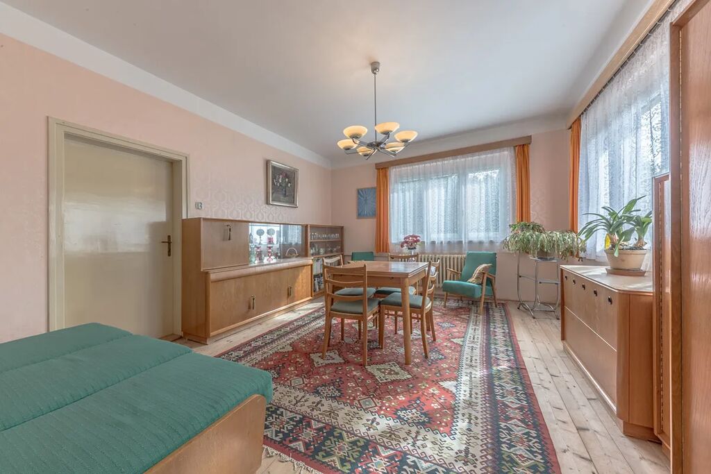⭐ Přízemí (65,75 m²): vstupní veranda, hala s původním dřevěným schodištěm, 2 pokoje, prostorná kuchyň se spíží, koupelna a samostatné WC.