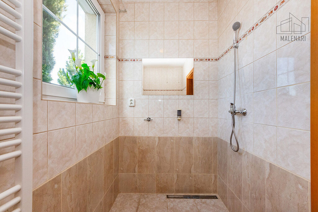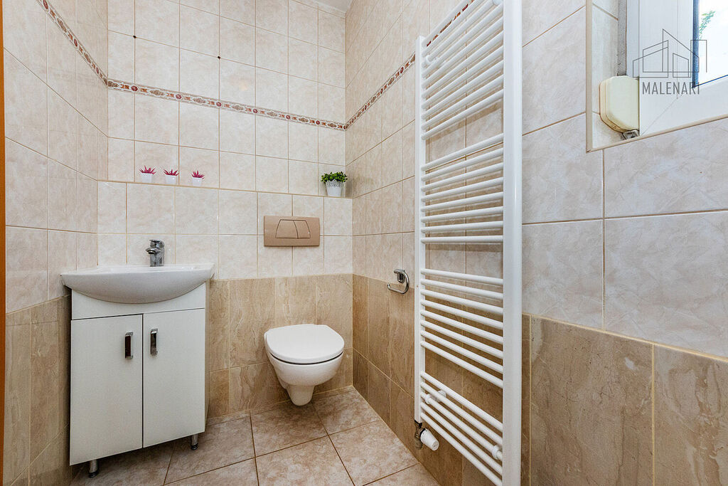 Součástí domu je velká garáž (cca 25,1 m²), před kterou je možné zaparkovat další auto.