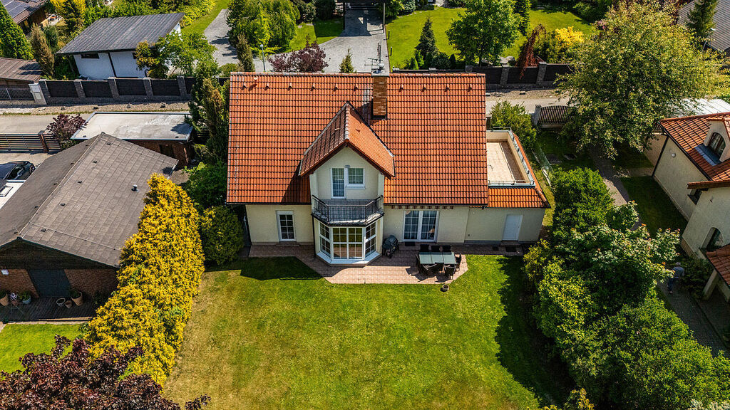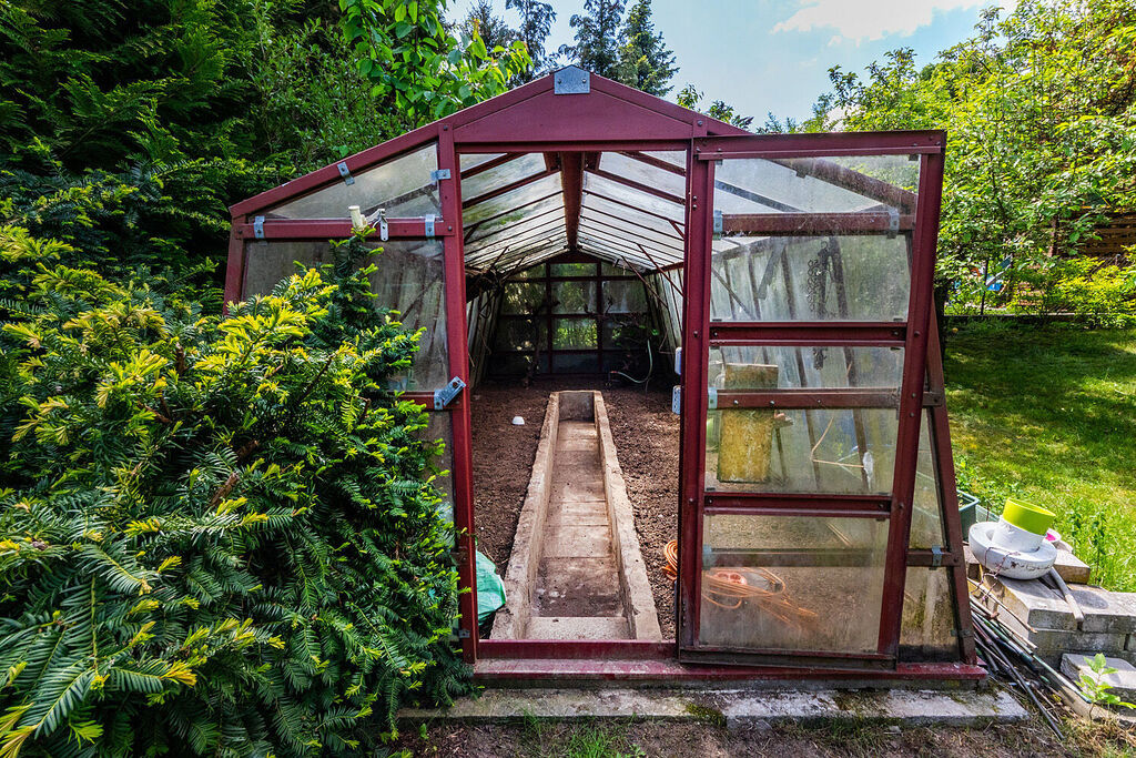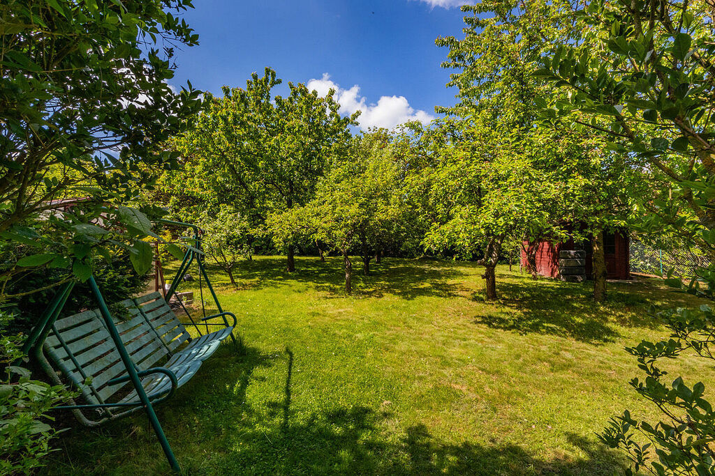 Přilehlá velká zahrada má velkou výhodu v tom, že je rozdělena na dvě části. Zahrada u domu, na které je terasa je krásně udržovaná a vybízí k posezení u grilu s přáteli. Zadní část zahrady je nápaditě oddělená živým plotem, za kterým je užitková zahrada, sad, skleník a zahradní domek.
