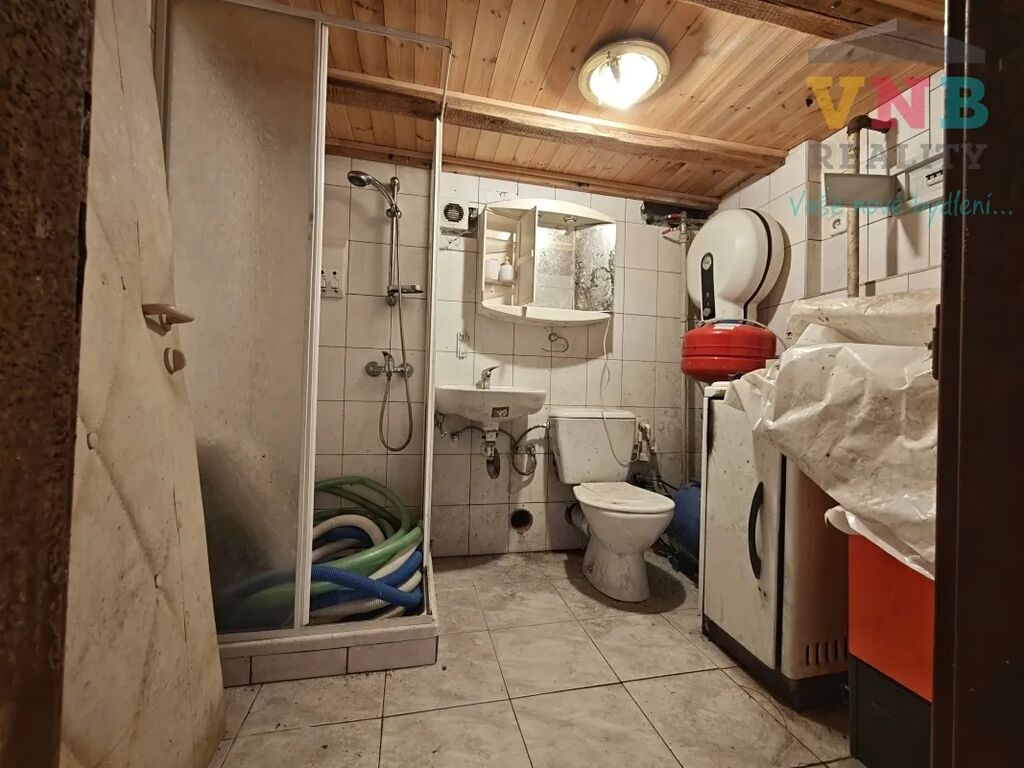 Pod částí chaty je ve zvýšeném suterénu koupelna se sprchovým koutem, kotlem a prostor pro další využití (uskladnění věcí, posezení, atd.)