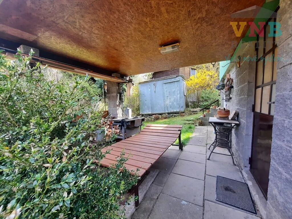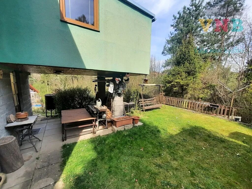 • Na zahradě za chatou je prostor pro další posezení, krytý přístřešek a dřevěná houpačka