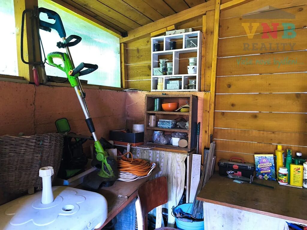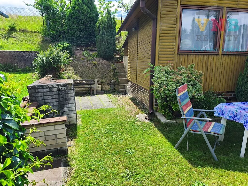 K chatě dále přináleží pozemek se zahradou 460 m2, který je v nájmu (600 Kč ročně). Na zahradě je travnatá plocha, záhonky a ovocné stromy.