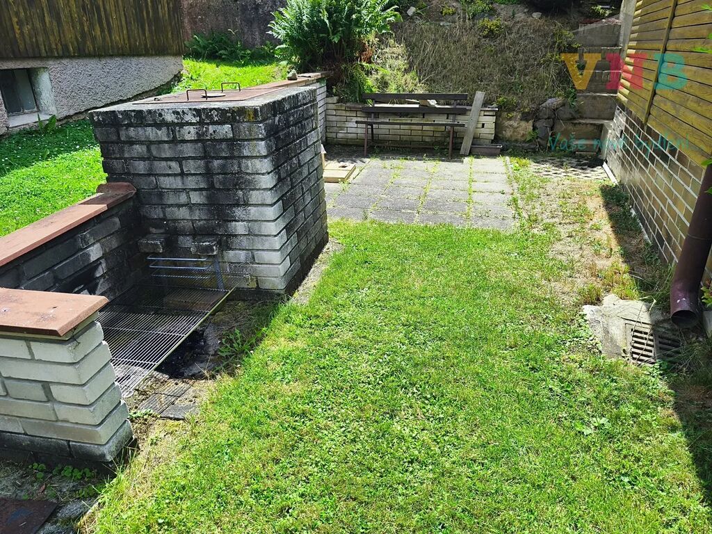 Vlastní pozemek je lemován malým potůčkem a živým plotem, vedle chaty je příjemné posezení s ohništěm a udírnou.