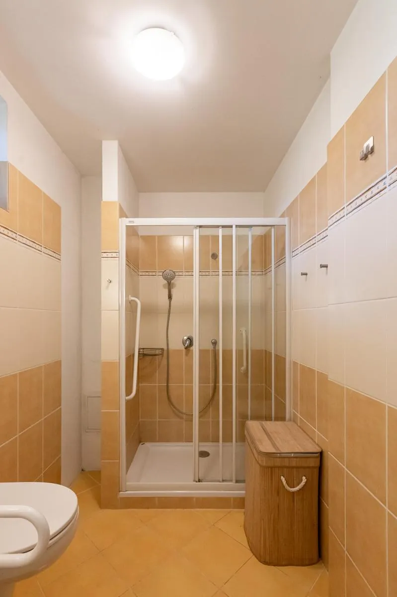Ve zvýšeném přízemí se nachází dvě prostorné ložnice a koupelna se sprchovým koutem.