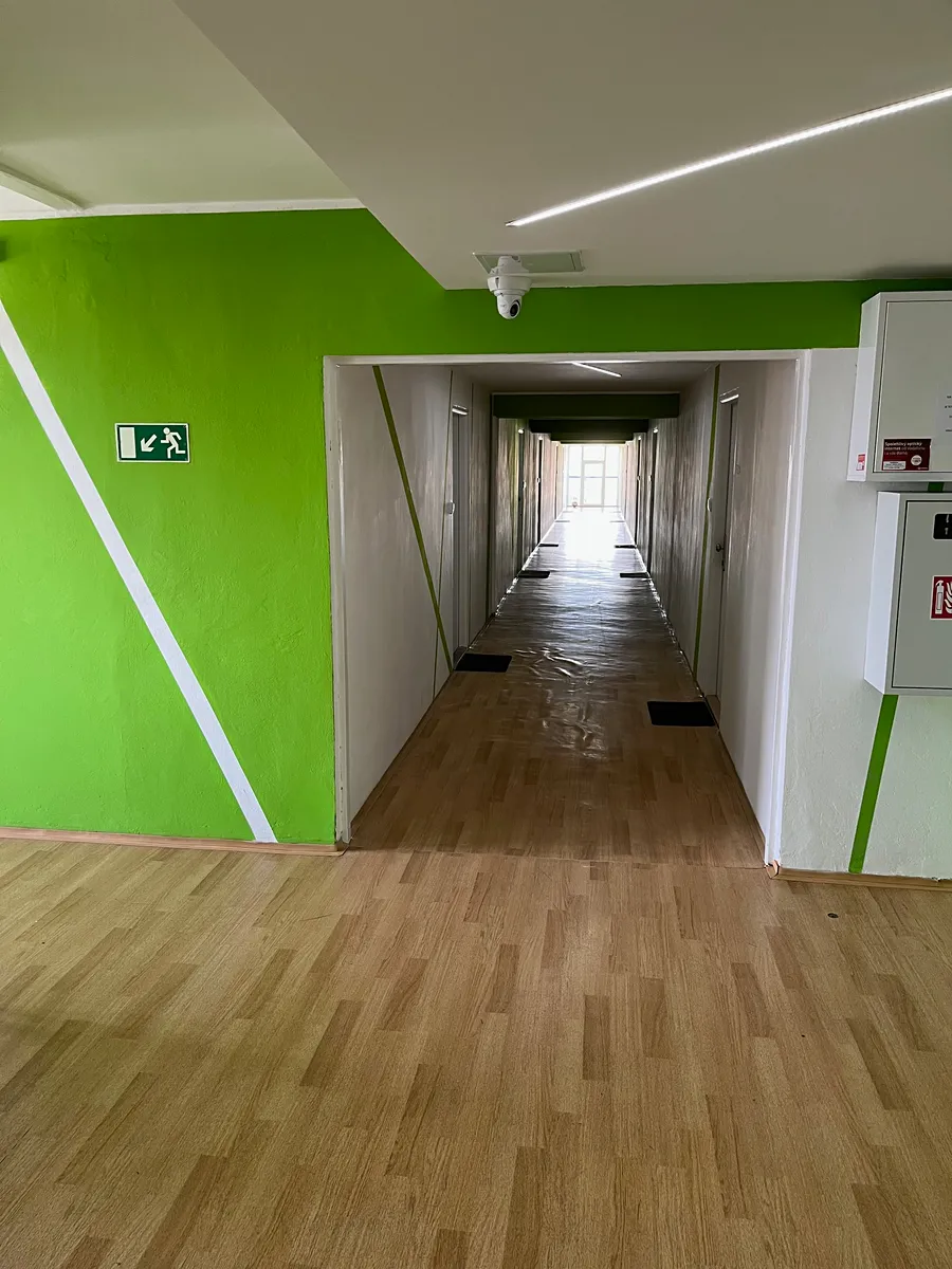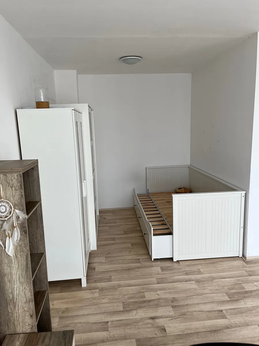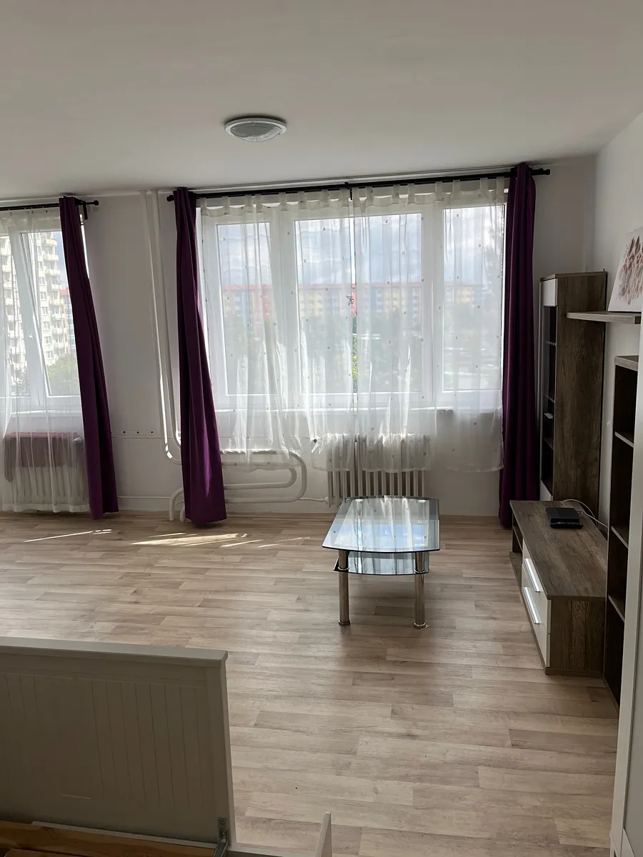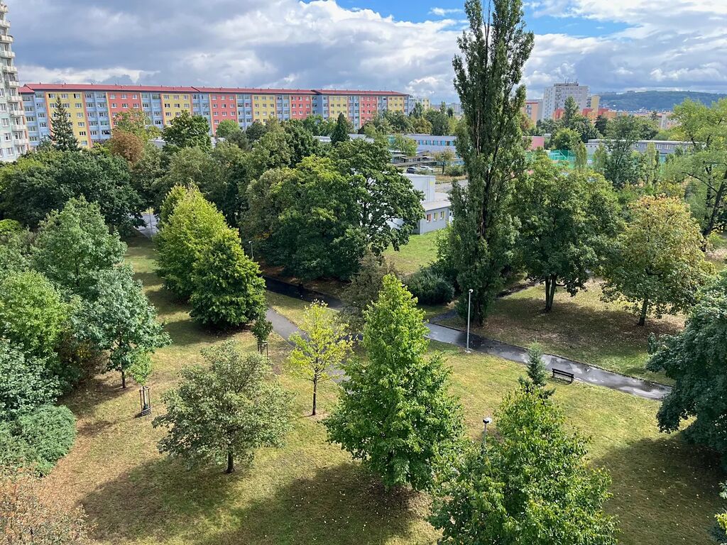 Byt s plochou 31 m2 je orientován na východ s krásným výhledem do parku. Byt je nabízen zařízený, k dispozici kuchyňská linka se sporákem, pračkou, lednicí a digestoří. Dále lůžko s nastavitelnou šířkou 80 až 140 cm, 2x skříň, obývací stěna (chybí pouze sedací souprava a jídelní stůl se židlemi). V předsíni dostatek úložného prostoru ve vestavěné skříni. V koupelně je sprchový kout, toaleta je samostatně. Na podlaze dlažba a plovoucí podlaha.