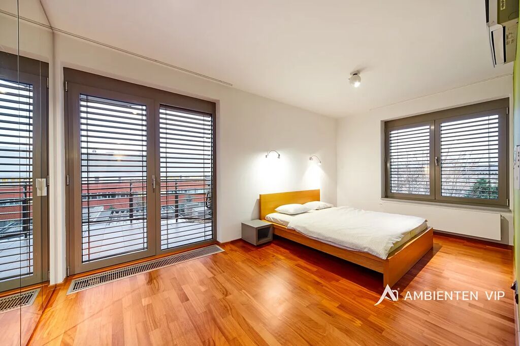 Prostorný byt o podlahové ploše 98,1 m2 s terasou o velikosti 9m2 a balkónem o velikosti 2m2 se nachází ve 3. patře moderní budovy s výtahem. Byt disponuje ložnicí a pokojem, dále prostorným kuchyňským koutem s obývacím prostorem o velikosti 36,8 m2, z kterého je přímý vstup na jižně orientovanou terasu s krásným panoramatickým výhledem. Všechny pokoje jsou vybaveny nábytkem. Nájemník se tak může nastěhovat pouze s osobními věcmi a může ihned bydlet.