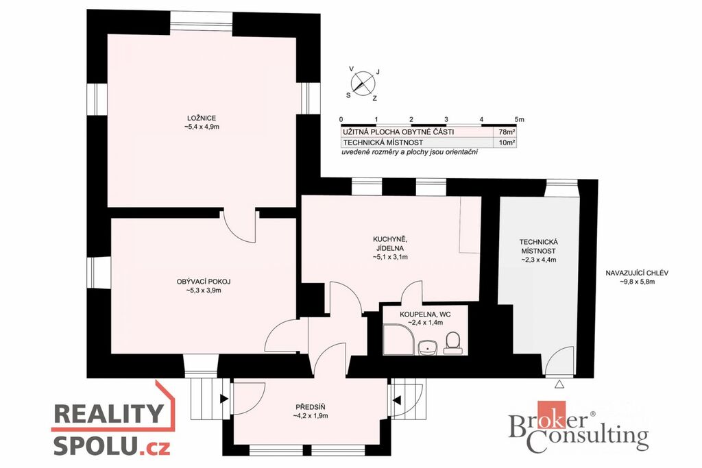 Nemovitost má dispozici 2+1 a užitnou plochu cca 88 m². Součástí je také prostorná stodola, vhodná pro dílnu, uskladnění materiálu nebo přestavbu dle vlastních představ.