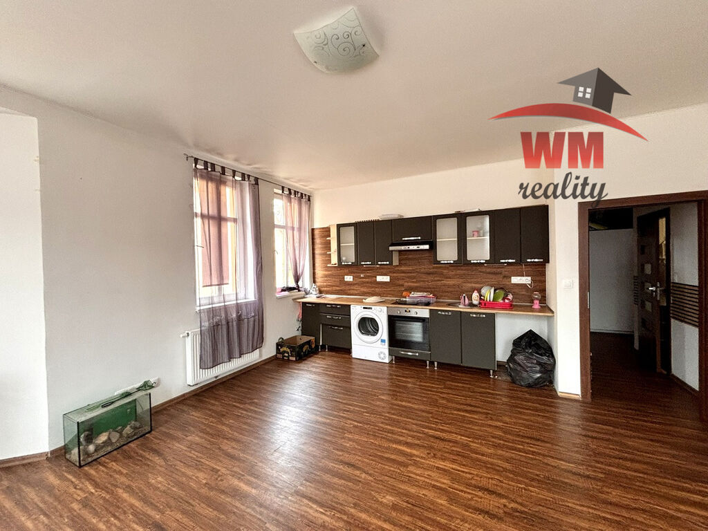 Byt je ve velmi pěkném stavu a sestává z předsíně, koupelny se sprchovým koutem a WC, dále vcházíme do velké kuchyně, kterou lze spojit s obývacím prostorem a poslední místností je samostatný pokoj se vstupem z předsíně.