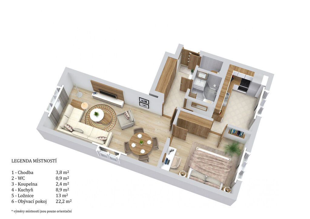 Dovoluji si vám nabídnout podnájem kompletně zrekonstruovaného bytu 2+kk s užitnou plochou 52 m². Byt se nachází v 2.NP panelového domu s výtahem. Při vstupu do bytu se ocitneme v zádveří se šatními skříněmi, které byt rozděluje na samostatné a pokud chcete i neprůchozí pokoje. Jeden větší slouží jako obývací pokoj, druhý menší je jako ložnice s oknem do zeleně. Další místnost je Kuchyně. Kuchyňský kout je vybaven linkou se spotřebiči (sklokeramická deska, horkovzdušná trouba, myčka, lednice a digestoř). Dále je samostatná koupelna se sprchovým koutem a prostorem na pračku, a samostatná toaleta. Na podlahách v chodbě, toaletě, koupelně a kuchyni je dlažba v pokojích pak je marmoleum. Okna jsou plastová se žaluziemi. V bytě je připojení k internetu díky vodafone (UPC). Dům prošel kompletní rekonstrukcí včetně nového výtahu a zateplení. V okolí domu se nachází veškerá občanská vybavenost. Dům se nachází v klidné části města a jen pár metrů od obchodů, restaurací autobusové zastávky, apod. Praha 3 - Jarov je vyhledávaná lokalita s vynikající dopravní dostupností nejen do centra, ale i ostatních částí Prahy. V těsné blízkosti domu se nachází autobusová zastávka. Nedaleko domu je mnoho míst sloužících ke kulturnímu i sportovnímu vyžití. Jedná se o zajímavou nabídku. Pro velký zájem prosím o prvotní kontakt přes email dle níže uvedeného formuláře.