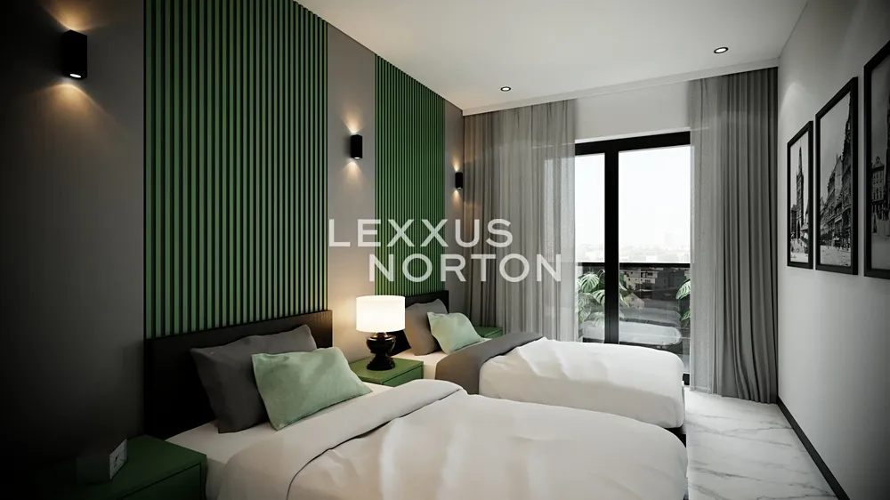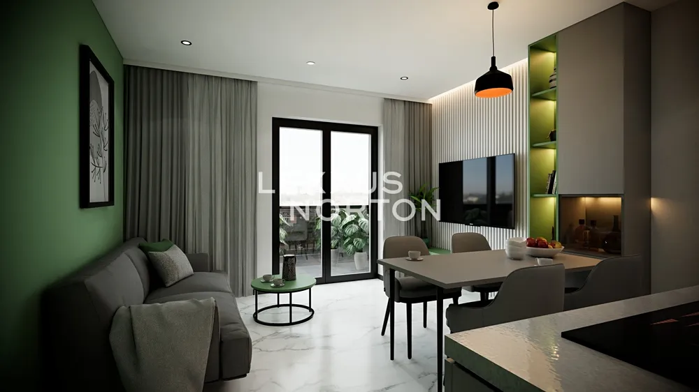 Srdcem bytu je světlý obývací pokoj propojený s kuchyňským koutem a přímým vstupem na balkon. Ložnice je doplněna praktickou šatnou s dostatkem úložného prostoru. Koupelna s vanou i samostatná toaleta jsou zpracovány v elegantním nadčasovém stylu – stěrka v imitaci kamene a černé baterie Mexen Cube.