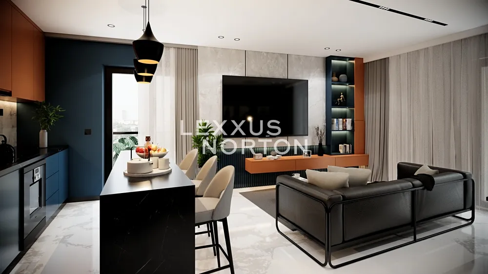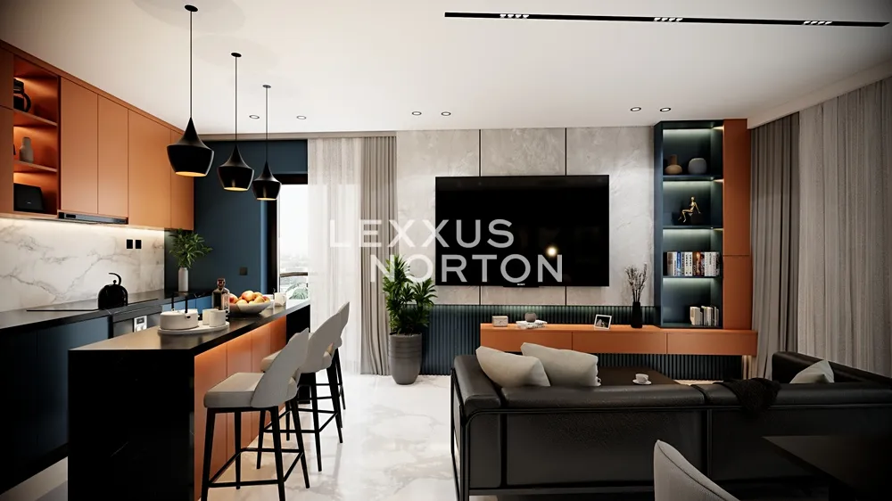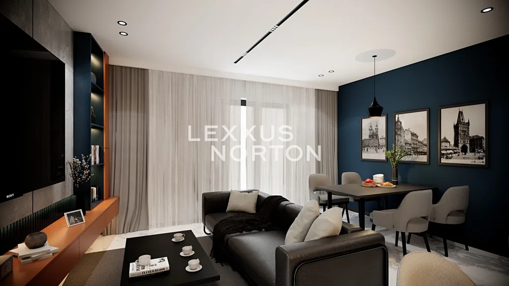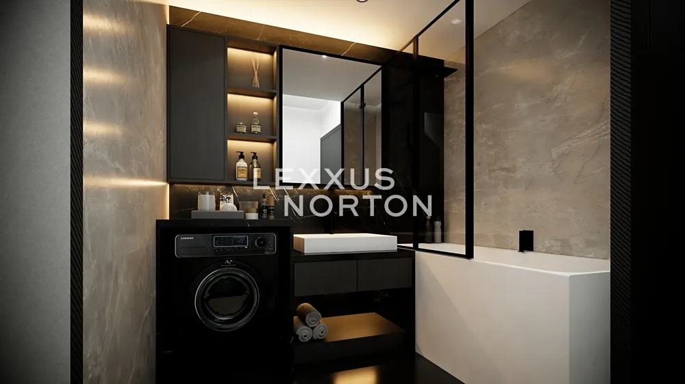 Hlavní obytný prostor nabízí dostatek místa pro kuchyňský kout i obývací část a přímý vstup na balkon. Ložnice disponuje prostorem pro šatní skříně a úložné prvky. Koupelna s vanou i samostatné WC jsou vyřešeny v moderním designu se stěrkou v imitaci kamene a černými bateriemi Mexen Cube.