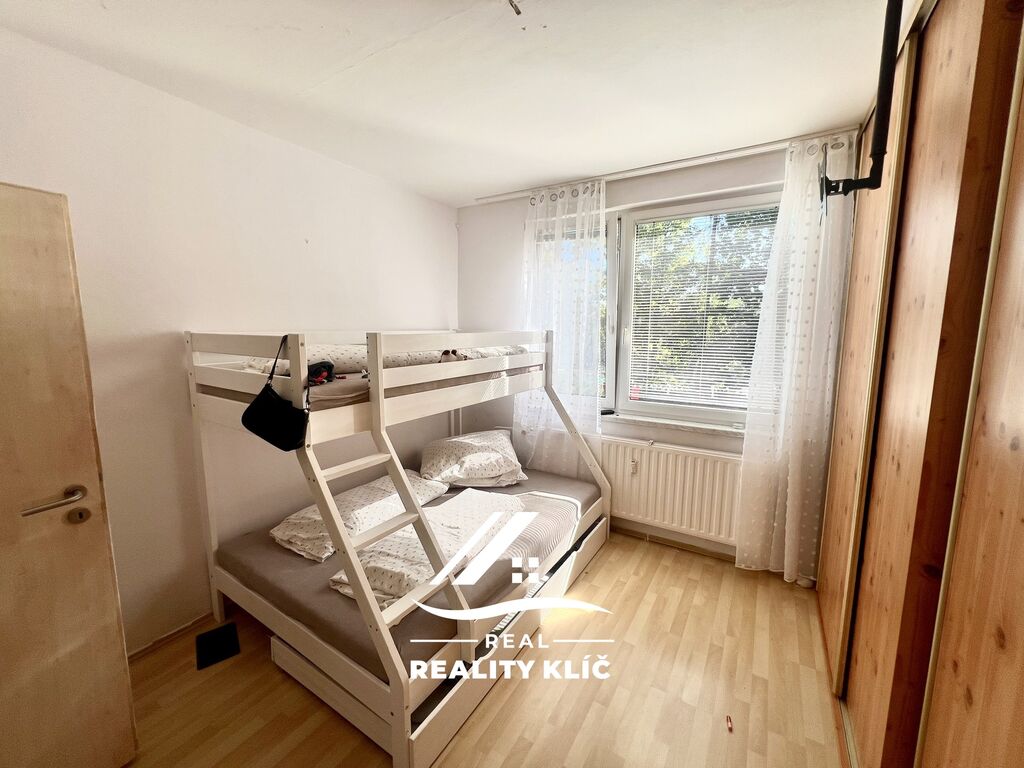 Dispozičně byt nabízí tři pokoje, z nichž jeden slouží jako obývací pokoj, dále samostatnou kuchyň s kuchyňskou linkou, koupelnu a samostatné WC. Součástí prodeje zůstávají vestavěné skříně a kuchyňská linka. K bytu náleží dvě sklepní kóje, které poskytují dostatek úložného prostoru.