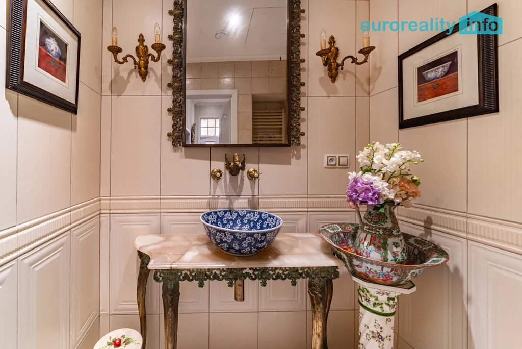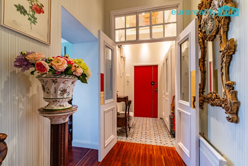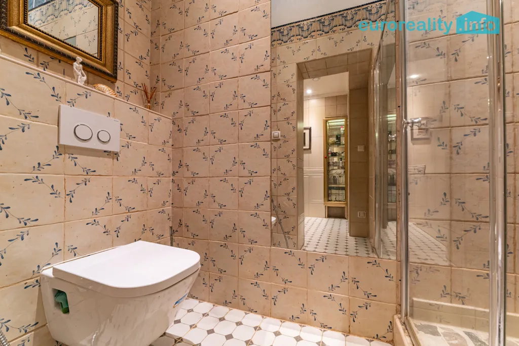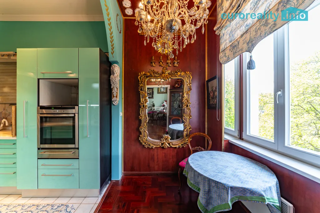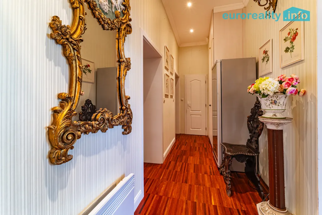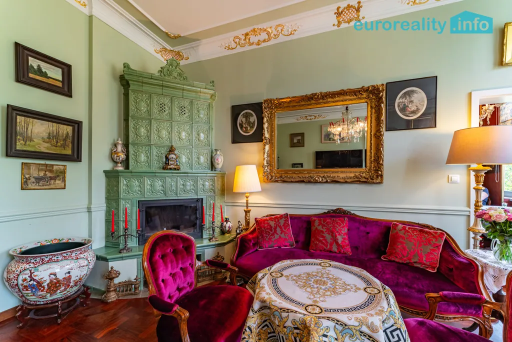 Tento elegantní byt představuje harmonické propojení tradičního lázeňského stylu a moderního komfortu. Na první pohled vás zaujme podlaha z afrického teaku, vysoké stropy se štukovou výzdobou, impozantní křišťálový lustr i kachlová kamna z dílny předního českého kachláře, která dotvářejí autentickou atmosféru starých lázní.