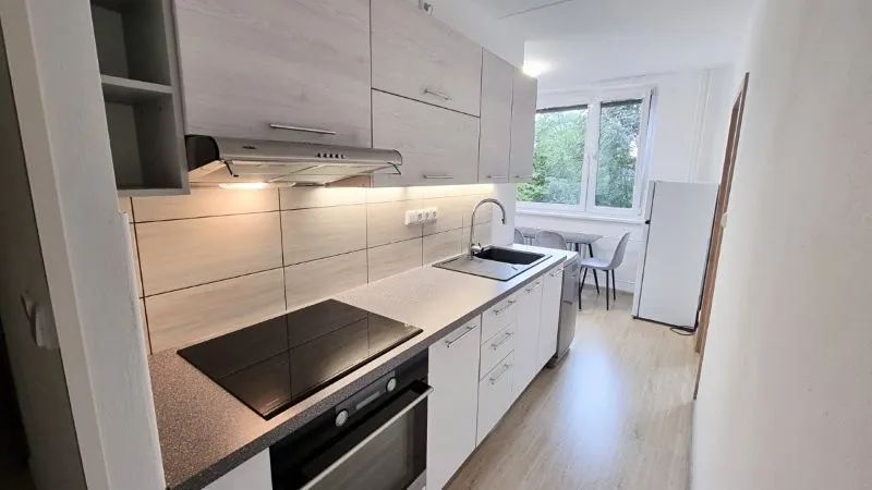 1330 2+1 Jihlava, Tylova ul., pronájem kompletně zrekonstruovaného panelového bytu v 1. patře zrekonstruovaného panelového domu poblíž centra. V kuchyni je nová kuchyňská linka včetně spotřebičů ( elektrická varná deska, digestoř, elektrická trouba, myčka nádobí, lednička s mrazákem ). Výměra bytu 56,1 m2 + velká betonová prosklená lodžie. PENB „C“. Volný od října 2025. Bez zvířat. Nájemné: 13.000,- Kč/1 měs. + 5.000,- Kč energie + 13.000,- Kč kauce + 13.000,- Kč jednorázová provize RK