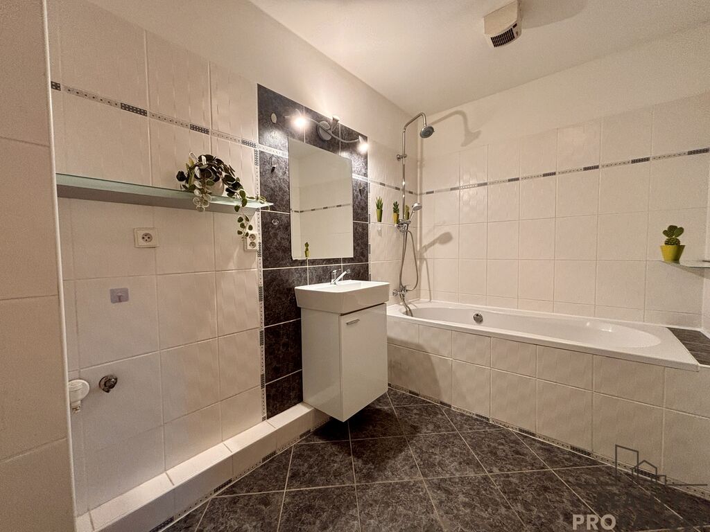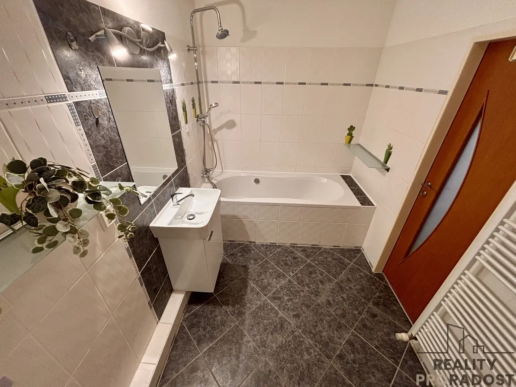 -prostorná koupelna s vanou a místem pro pračku a sušičku