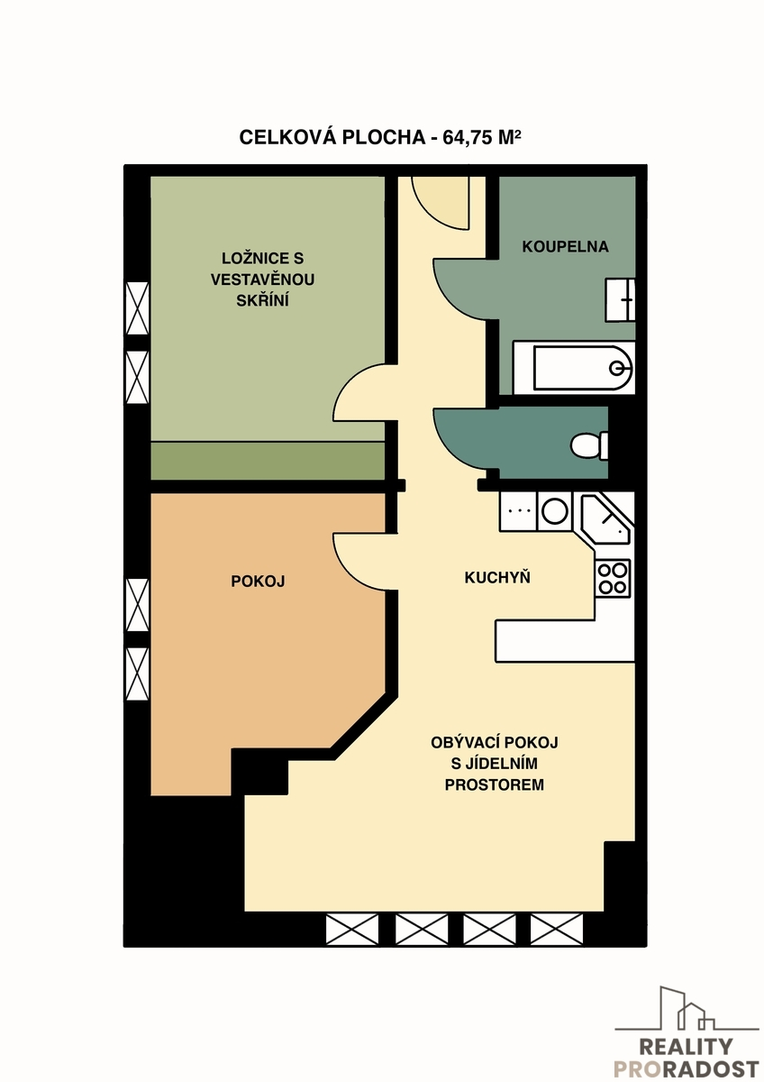 Nabízíme vám ke koupi bytovou jednotku o dispozici 3+kk v 6. nadzemním podlaží bytového domu s výtahem na ulici Handkeho v Olomouci - Nové Sady. Celková výměra bytu činí 64,75 m².