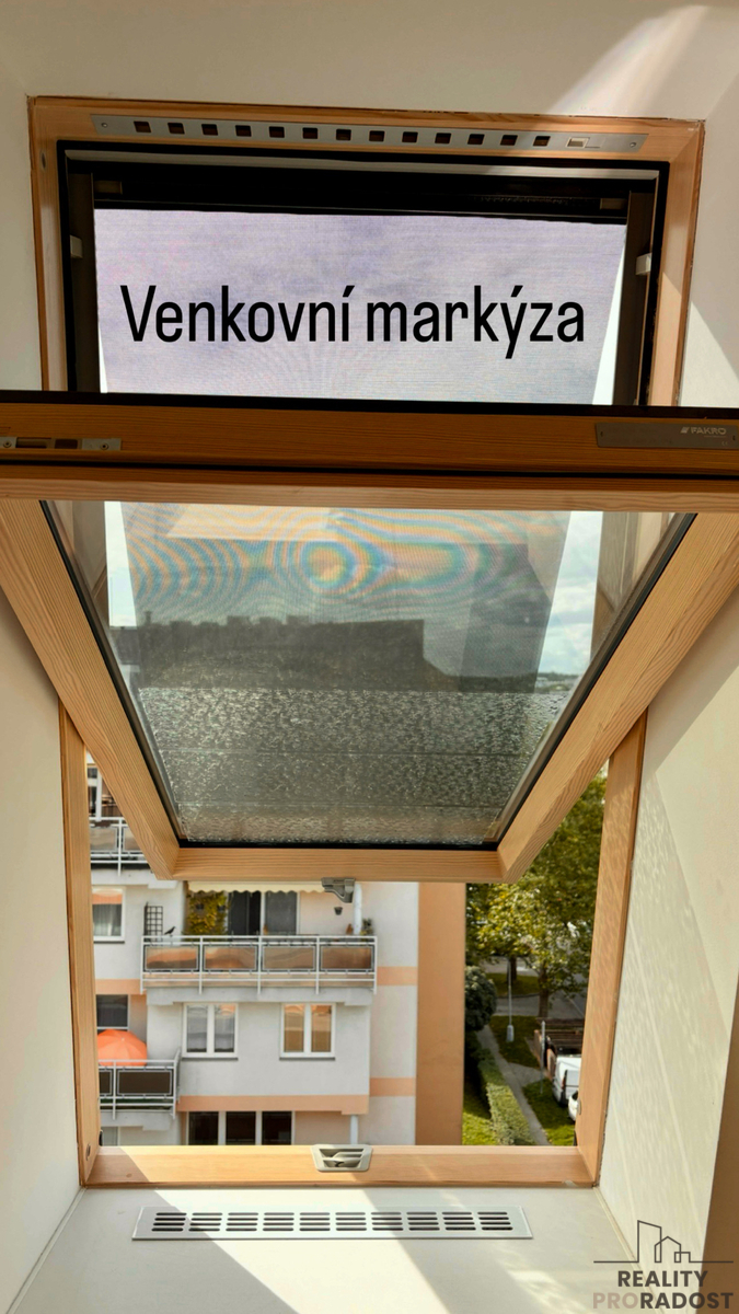 Byt je po velmi zdařilé rekonstrukci nové zateplení střechy minerální vatou, trojskla s odvětráváním, antistatické folie v oknech, venkovní markýza na střešních oknech, odsávání z kuchyně vyvedené na střechu. V každé místnosti je instalována klimatizace. K bytu náleží parkovací karta k domu. Parkování je možné přímo před bytovým domem. Bezpečnost zajišťuje kamerový systém v objektu.