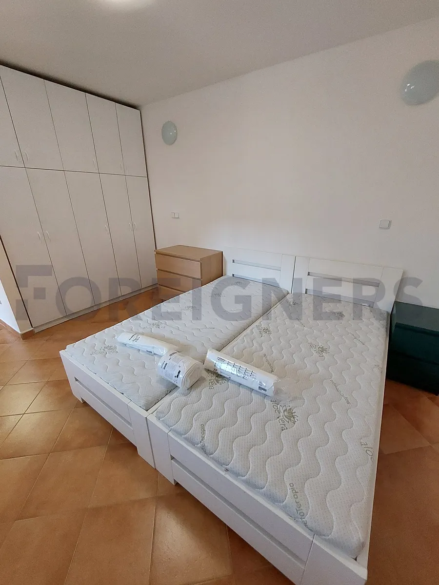 - Obytný pokoj je vybaven dvěma postelemi, matrací, konferenčním stolkem a skříní.