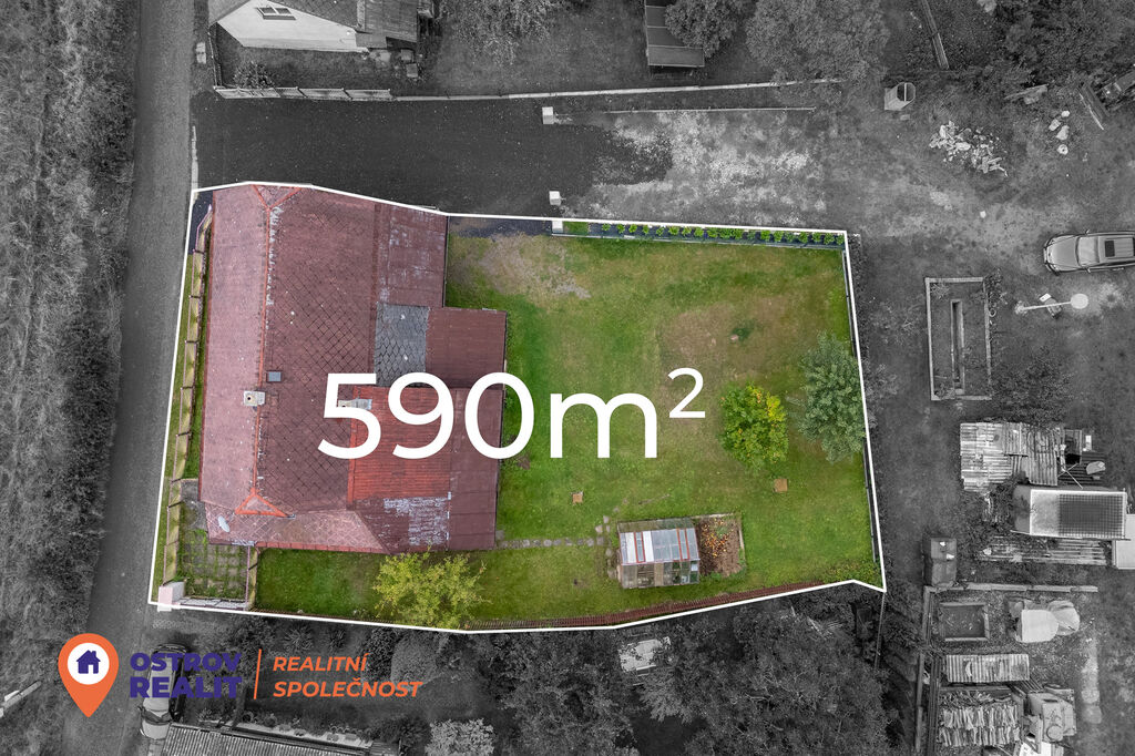 Celková výměra pozemku činí 590 m². Na zahradě se nachází skleník a vzrostlé ovocné stromy, které dotvářejí příjemné prostředí pro odpočinek i drobné zahrádkaření. Jen pár kroků od domu začíná les, ideální pro procházky, houbaření či sportovní aktivity v přírodě.