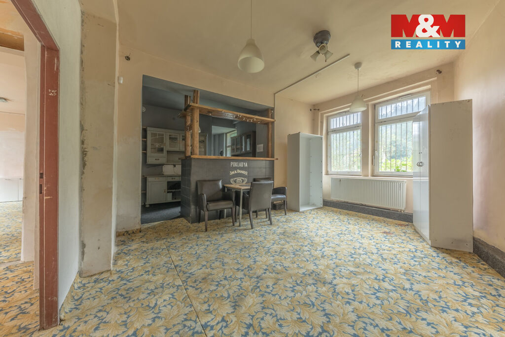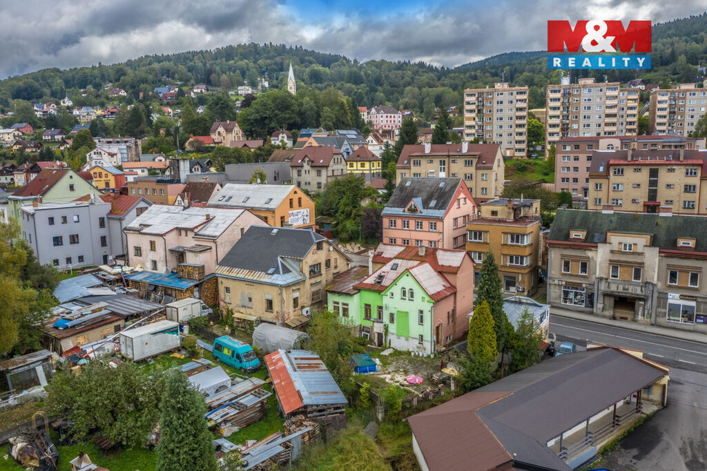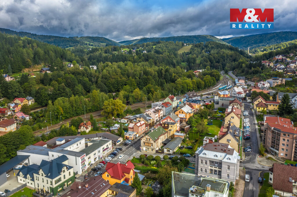 Nabízíme k prodeji komerční objekt v centru Tanvaldu u hlavního tahu Praha - Harrachov. Nemovitost sloužila jako herna a bar v přízemí, v patře byla provozována restaurace, která je nyní přestavěná na pěkný byt o dispozici 2+1. Část domu je podsklepená a vykachličkovaná. V tomto prostoru se nacházela kuchyně pro restauraci v 1. patře a jídlo bylo posíláno výtahem. Na oplocené zahradě je posezení pod pergolou, hranici pozemku lemuje malý potok. Dům je nyní pronajatý a generuje slušný příjem, ve kterém může nový majitel pokračovat. Nájemník je vlastníkem stavební firmy a po dohodě je schopný udělat veškeré stavební úpravy na domě. Ideální dobře viditelné místo pro podnikání s trvalým bydlením. Jako ideální se nabízí možnost restaurace s venkovní terasou na dvoře, kterých je v této lokalitě málo.