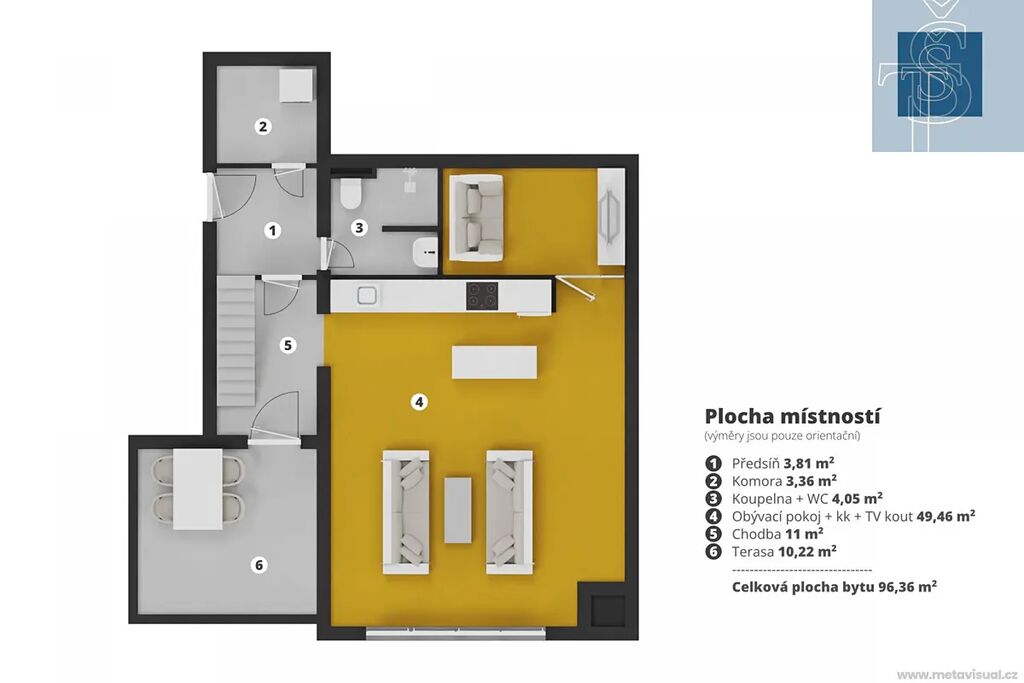 Tento atypický mezonetový byt 2+kk o výměře 96,36 m2 s terasou 10,22 m2 v Šestajovicích u Prahy (ulice Komenského) není jen bydlení je to životní styl.