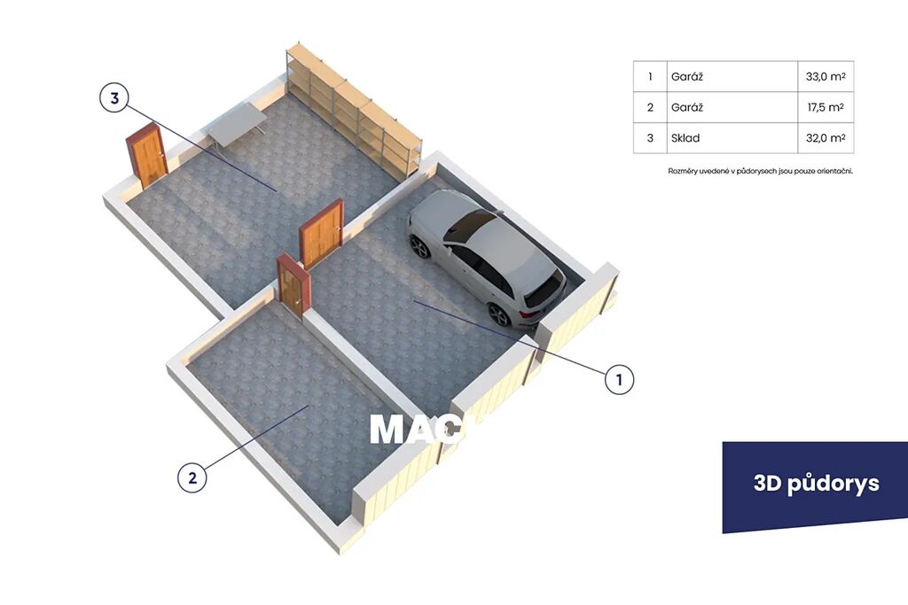 - garáž 1: 33,0 m2,