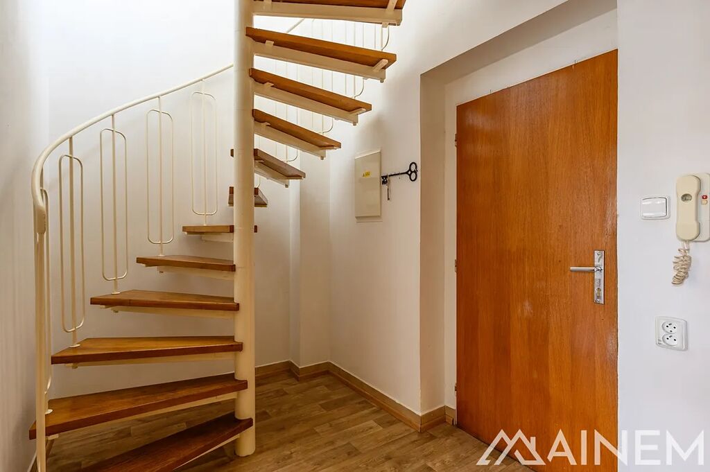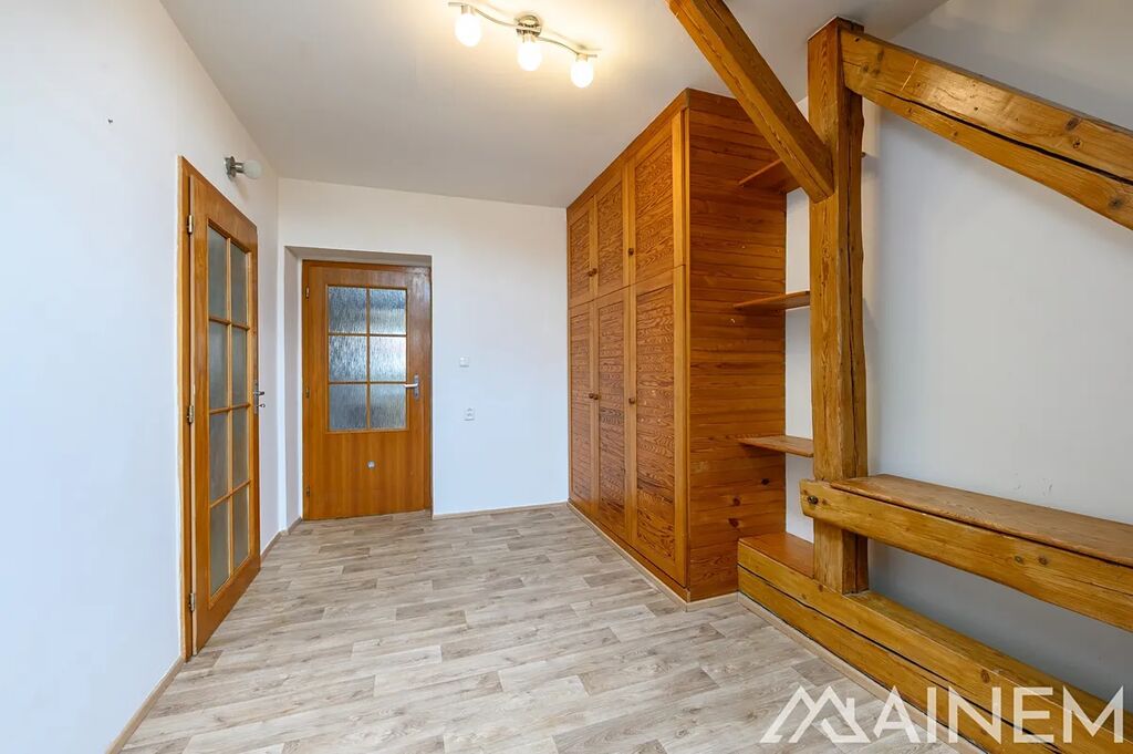 Dispozice bytu nabízí kuchyň, samostatný obývací pokoj, dvě ložnice (jedna z nich v horním podlaží), koupelnu se sprchovým koutem a WC a vstupní chodbu. Ohřev vody zajišťuje elektrický bojler, vytápění je řešeno plynovým kotlem, který je společný pro celý dům. Velkou výhodou bytu je skvělá dopravní dostupnost – zastávka tramvaje se nachází hned vedle domu a do centra města se dostanete za pouhých 5 minut.