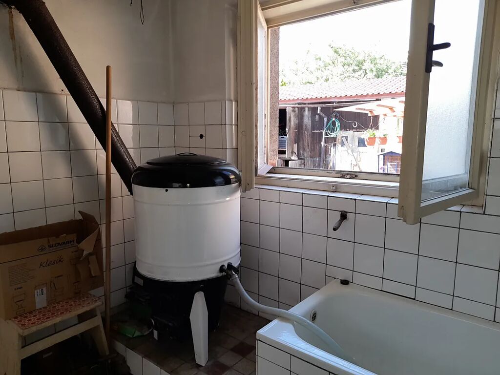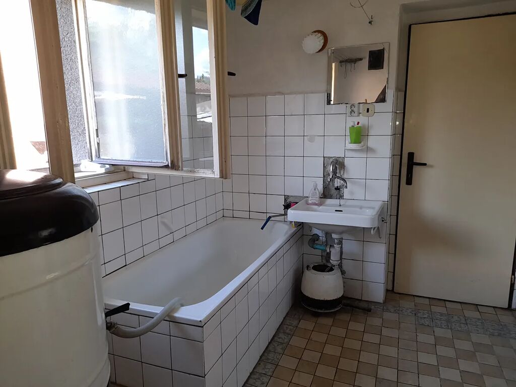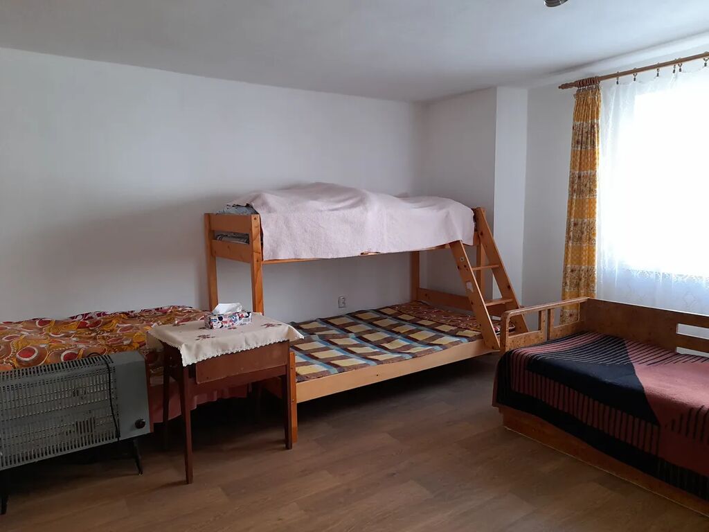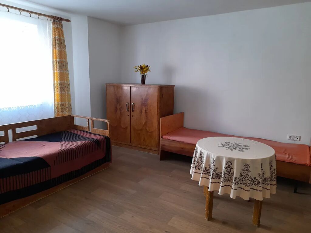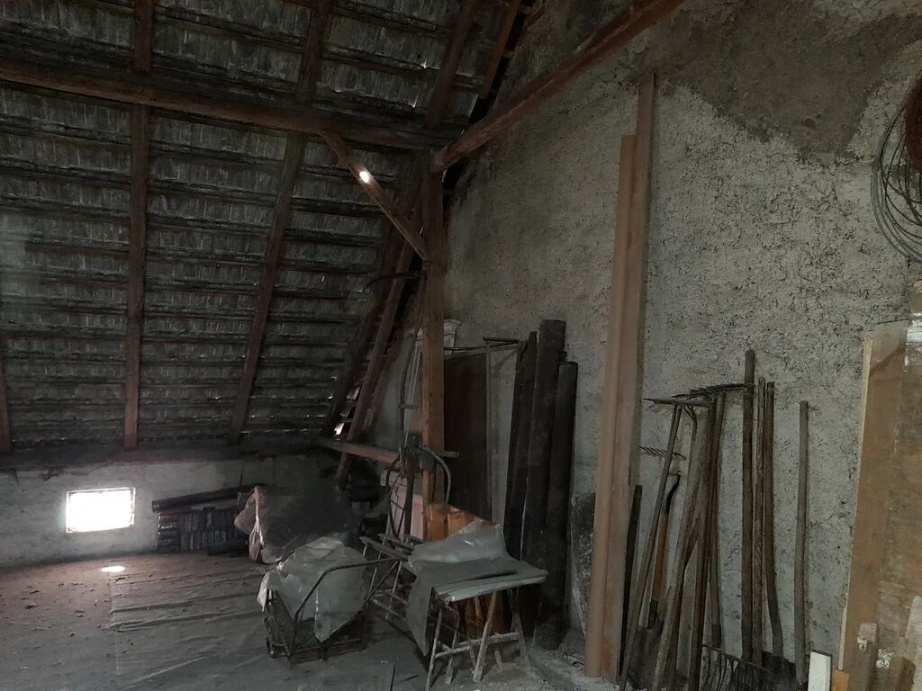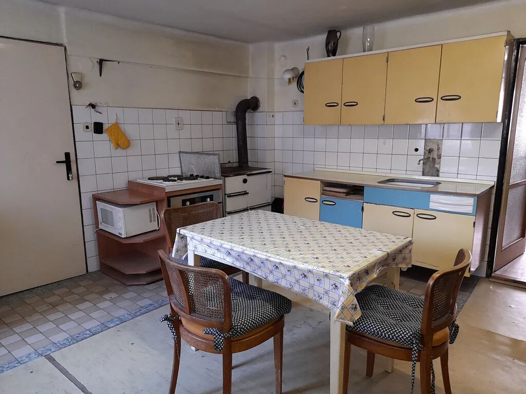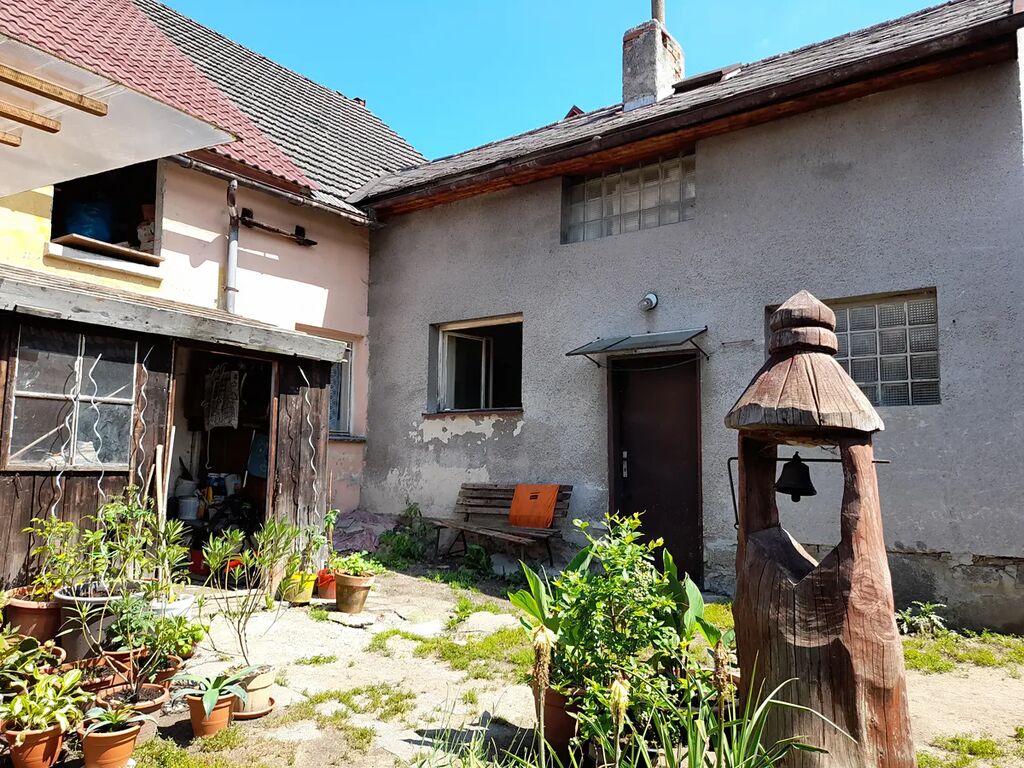 Dispozice: kuchyně 22,30 m2, obývací pokoj 22,90 m2, spíž, koupelna s WC, vstup na půdu, pod nímž je uskladněno uhlí. Do objektu přivedena obecní voda, odpad sveden do jímky na vyvážení, el. 230/400 V, topení na pevná paliva. Koupelna a WC stáří cca 50 let, ohřev vody brutarem. V obývacím pokoji udělána vodorovná izolace, podřezání zdí, nové okno, rozvod elektřiny a omítky. Půda je vhodná k půdní vestavbě. Nemovitost je více než 200 let stará, předpoklad rekonstrukce. Zastavěná plocha a nádvoří o ploše 123 m2, malý dvorek.