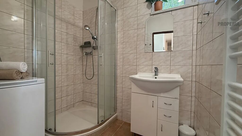 K bytu náleží velký sklep o rozloze 19,5 m² rozdělený do dvou místností, což je ideální pro uskladnění kol, sportovního vybavení či sezónních věcí. Parkování je možné přímo před domem a je vždy bezproblémové.