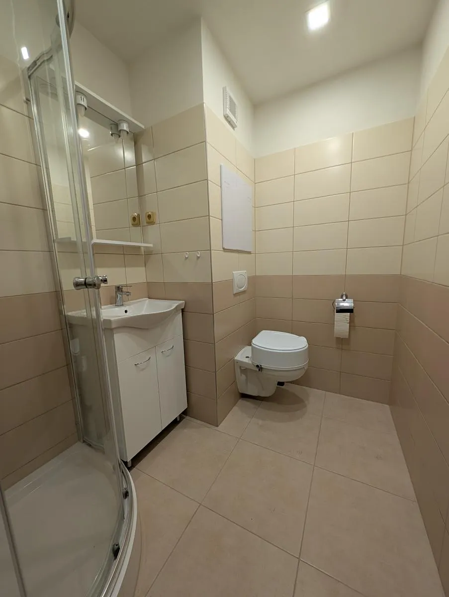 Byt prošel rekonstrukcí a nabízí čisté a klidné bydlení s výhledem do zeleně. Interiér tvoří obytný prostor s kuchyňským koutem, samostatná ložnice, koupelna s toaletou a předsíň. Kuchyňská linka je vybavena sklokeramickou deskou, troubou, mikrovlnnou troubou, digestoří a lednicí. Byt se pronajímá částečně vybavený součástí je postel a skříň.