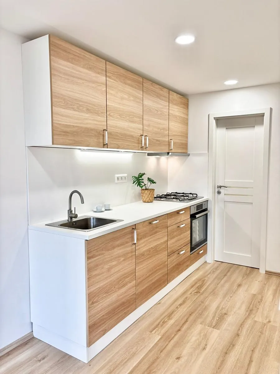 Nabízíme k pronájmu světlý a vkusně zrekonstruovaný byt o dispozici 2+kk a celkové výměře 48 m2, který se nachází v 1. patře (2. nadzemní podlaží) cihlového domu bez výtahu v klidné části města Meziboří, ulice J. A. Komenského 317. Nová menší kuchyňská linka se zabudovanou troubou a plynovým sporákem.