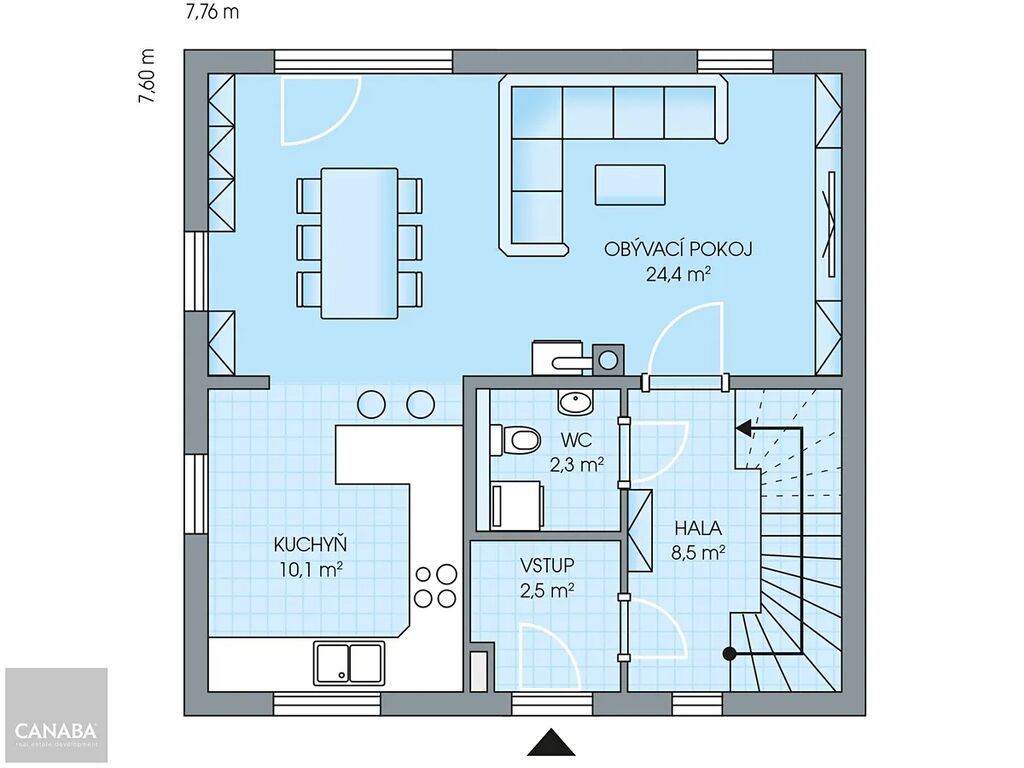 Uvedená cena je včetně pozemku, typové základové desky, vytápění tepelným čerpadlem a DPH.