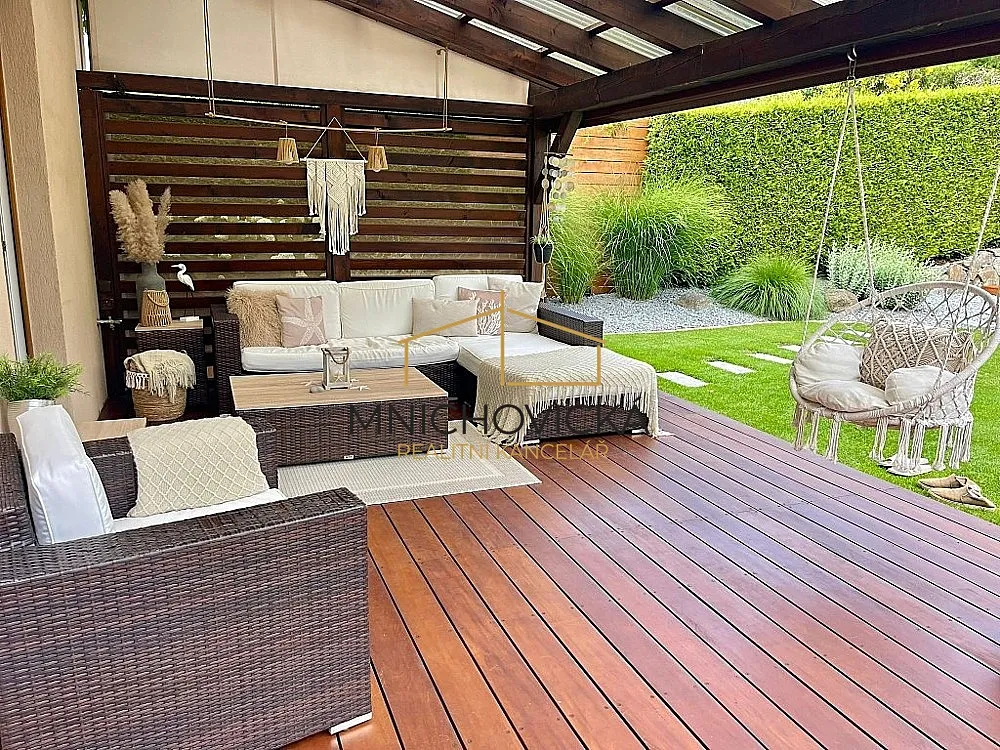 Dům stojí v krásné a udržované zahradě o výměře cca 1450 m2, se vzrostlým porostem okolo oplocení, chránícím soukromí majitelů od sousedních pozemků.
