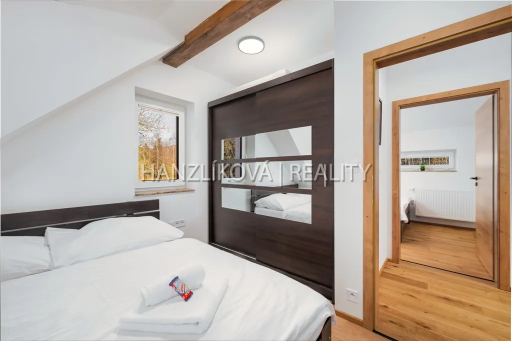 Areál je zasazený do nedotčené přírody, obklopený hlubokými lesy a nabízí naprostý klid a soukromí - ideální prostředí pro odpočinek i rodinnou rekreaci. Hranice pozemku sousedí s chráněnou krajinou oblastní a je zde stavební uzávěra. Jedinečnou atmosféru dotváří malý potůček, který se vine podél pozemku a přináší do prostředí osvěžující nádech a kouzlo horské přírody. Šum vody i zeleně v okolí dělají z tohoto místa ideální útočiště pro odpočinek, rekreaci či rodinné zázemí. Provozní náklady se pohybují kolem 6-8 tis Kč měsíčně. Nemovitost je možné využívat celoročně - ať už jako rodinné rekreační zázemí nebo jako investici s možností pronájmu. Možnost zajištění přes agenturu včetně zajištění úklidu.